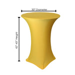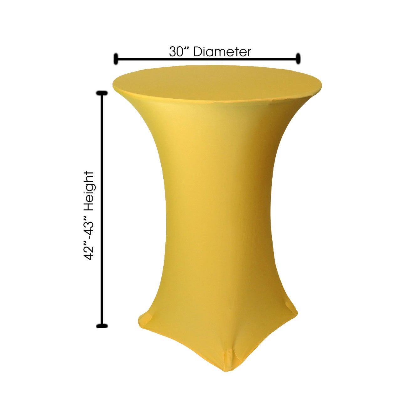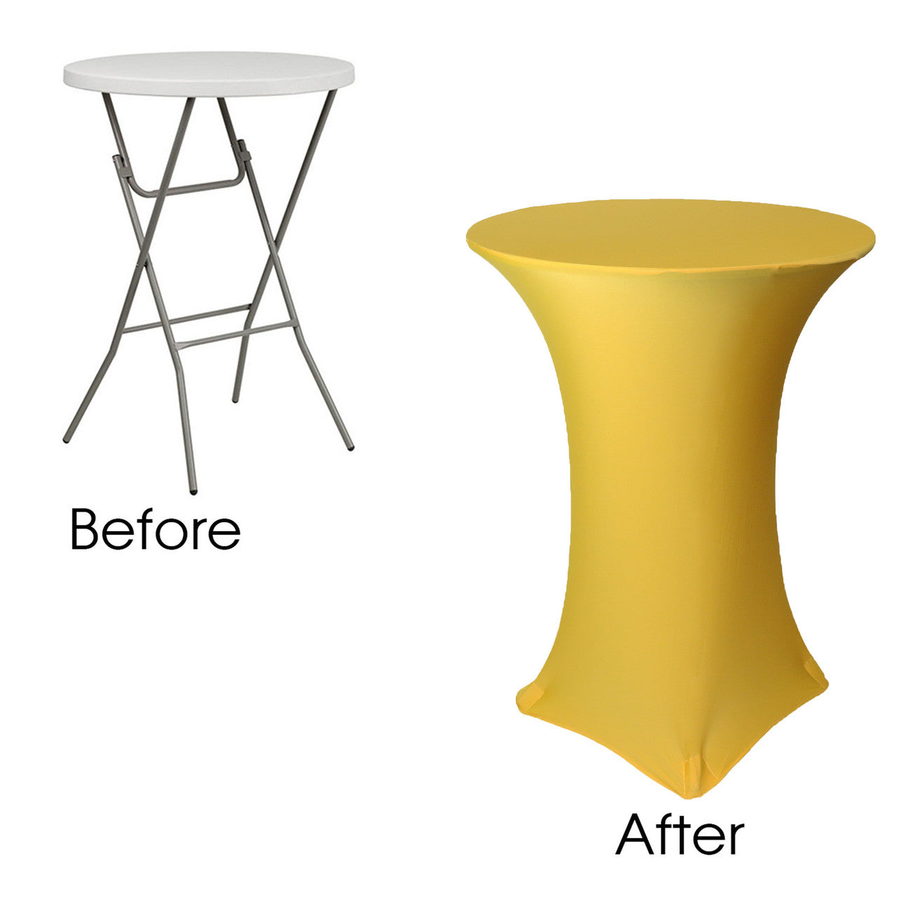 Our durable spandex chair covers fit standard 30"x42" Highboy/Cocktail Tables (30" Round x 42" Tall w/ 4 Leg Base). They're made from high quality spandex with a 4-way stretch so they're easy to put on and made to last. They're also made with durable elastic foot pockets which help secure the cover in place, ensure a great fit, and help prevent damage and excess wear and tear. These covers are a perfect way to improve the look of your chair covers and ideal for rental companies, banquet halls, hotels, various venues and special events.