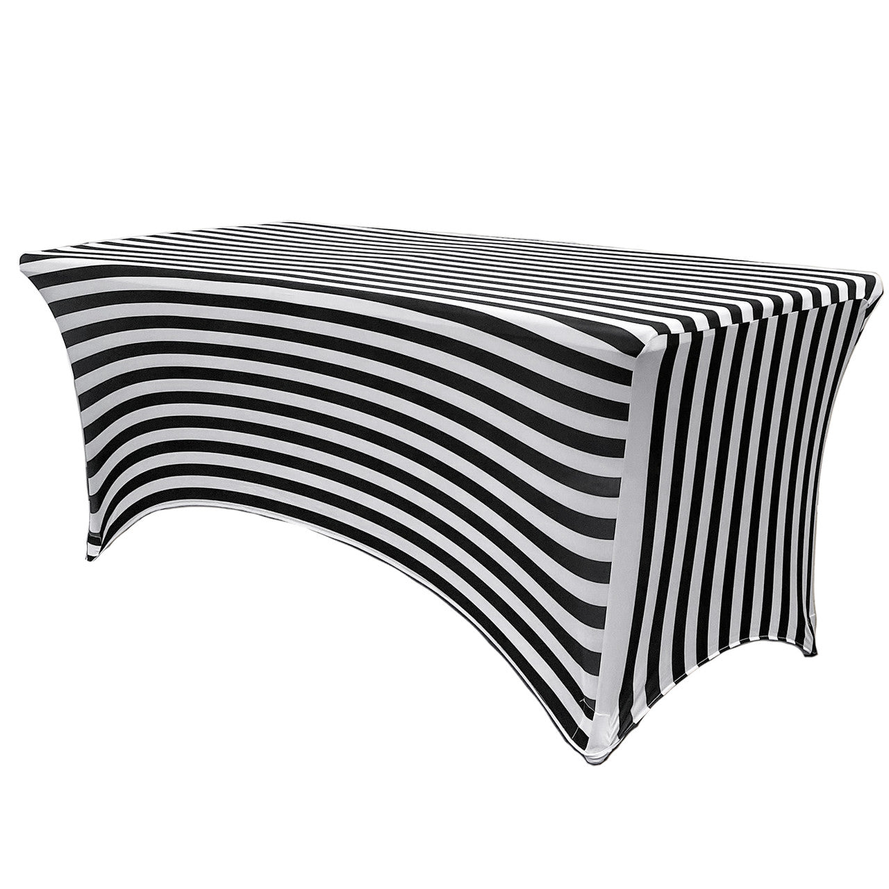 Print Spandex (6'x30") Banquet Table Cover in Black and White Striped
