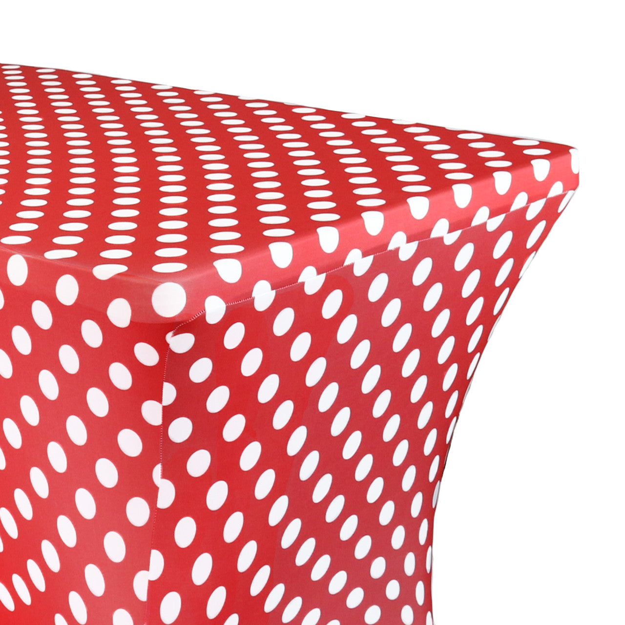 Print Spandex (6'x30") Banquet Table Cover in Red and White Polka Dot