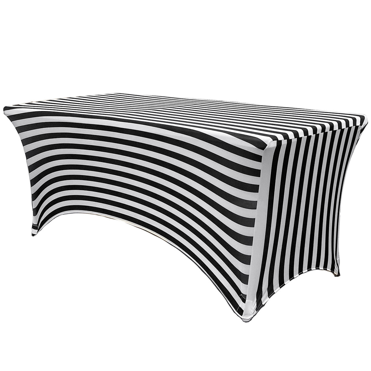 Print Spandex (8'x30") Banquet Table Cover in Black/White Stripes