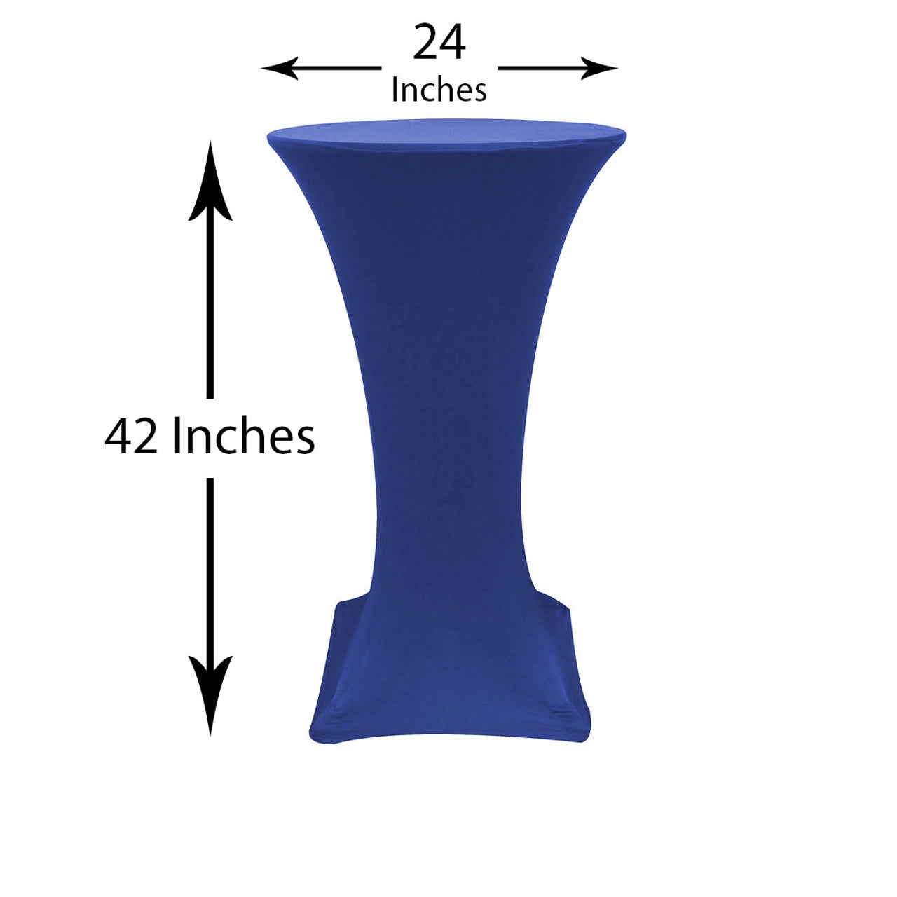 Our durable spandex chair covers fit standard 24"x42" Highboy Tables (24" Round x 42" Tall w/ 4 Leg Base). They're made from high quality spandex with a 4-way stretch so they're easy to put on and made to last. They're also made with durable elastic foot pockets which help secure the cover in place, ensure a great fit, and help prevent damage and excess wear and tear. These covers are a perfect way to improve the look of your chair covers and ideal for rental companies, banquet halls, hotels, various venues and special events.