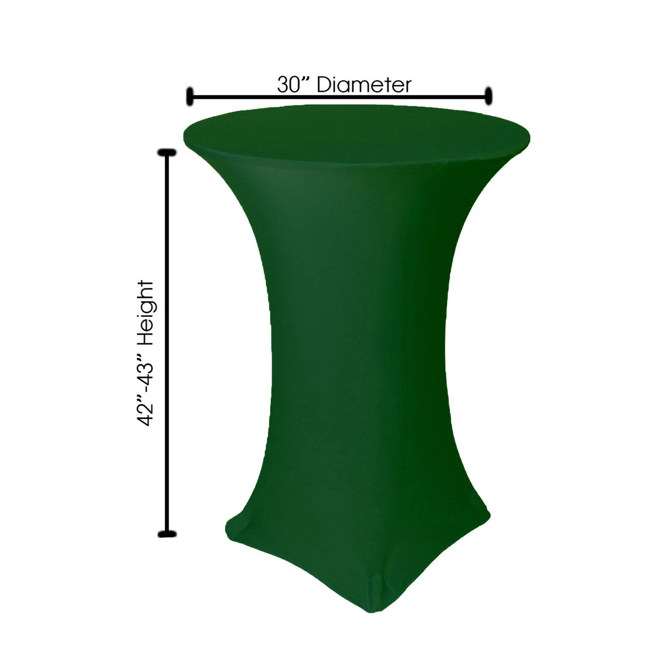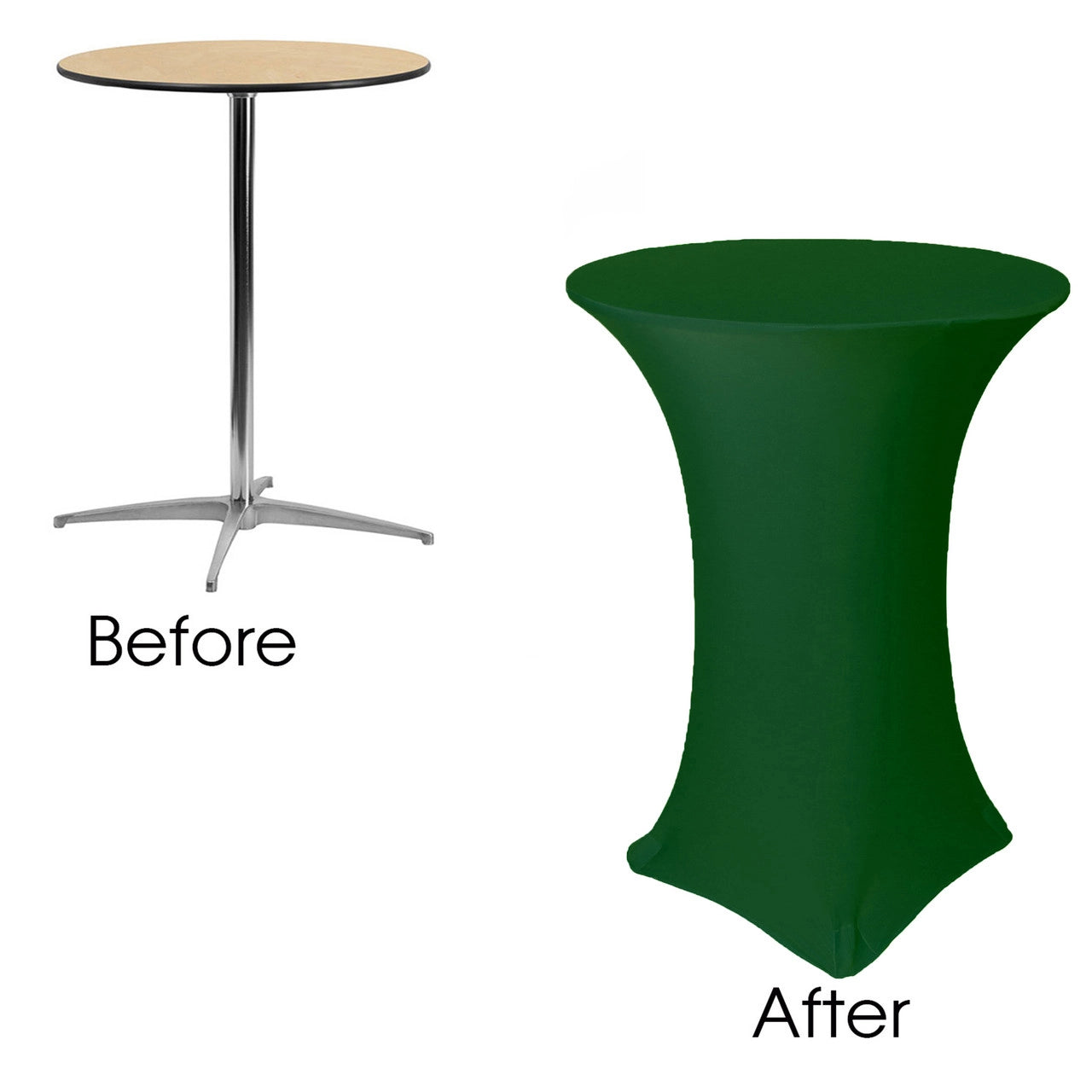 Our durable spandex chair covers fit standard 30"x42" Highboy/Cocktail Tables (30" Round x 42" Tall w/ 4 Leg Base). They're made from high quality spandex with a 4-way stretch so they're easy to put on and made to last. They're also made with durable elastic foot pockets which help secure the cover in place, ensure a great fit, and help prevent damage and excess wear and tear. These covers are a perfect way to improve the look of your chair covers and ideal for rental companies, banquet halls, hotels, various venues and special events.