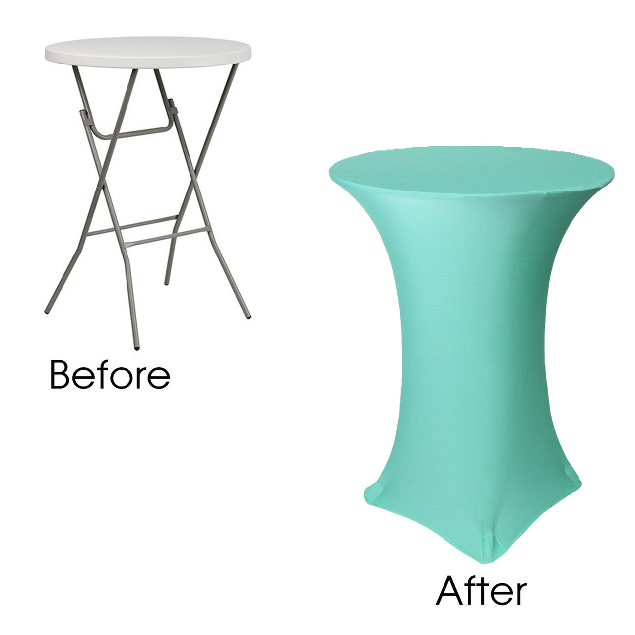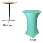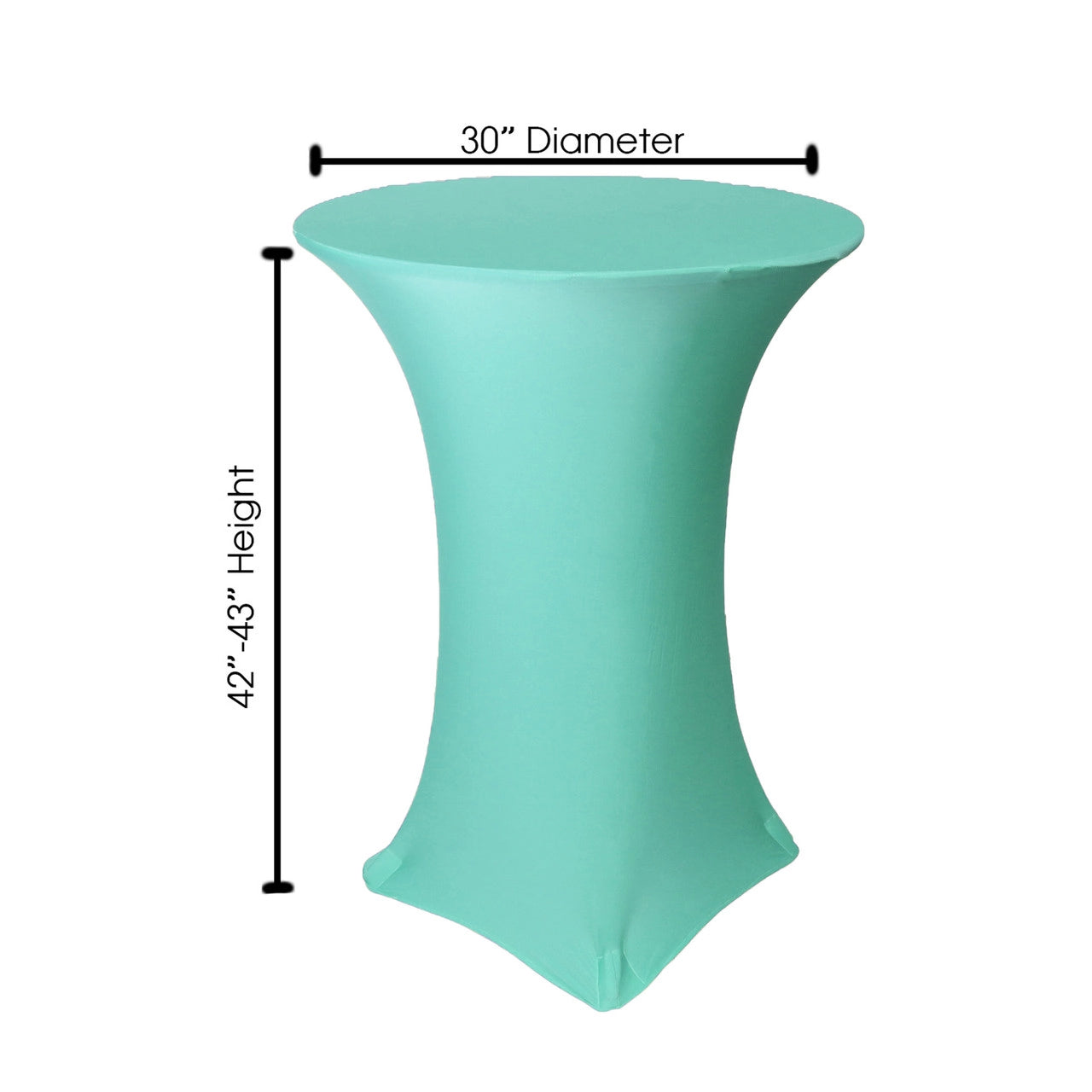 Our durable spandex chair covers fit standard 30"x42" Highboy/Cocktail Tables (30" Round x 42" Tall w/ 4 Leg Base). They're made from high quality spandex with a 4-way stretch so they're easy to put on and made to last. They're also made with durable elastic foot pockets which help secure the cover in place, ensure a great fit, and help prevent damage and excess wear and tear. These covers are a perfect way to improve the look of your chair covers and ideal for rental companies, banquet halls, hotels, various venues and special events.