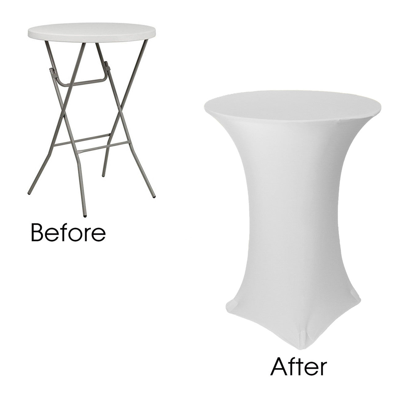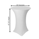 Our durable spandex chair covers fit standard 30"x42" Highboy Tables (30" Round x 42" Tall w/ 4 Leg Base). They're made from high quality spandex with a 4-way stretch so they're easy to put on and made to last. They're also made with durable elastic foot pockets which help secure the cover in place, ensure a great fit, and help prevent damage and excess wear and tear. These covers are a perfect way to improve the look of your chair covers and ideal for rental companies, banquet halls, hotels, various venues and special events.