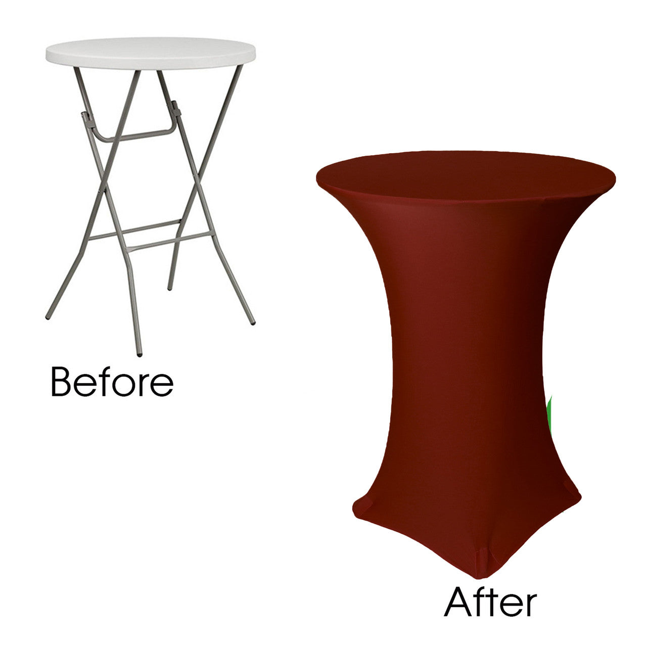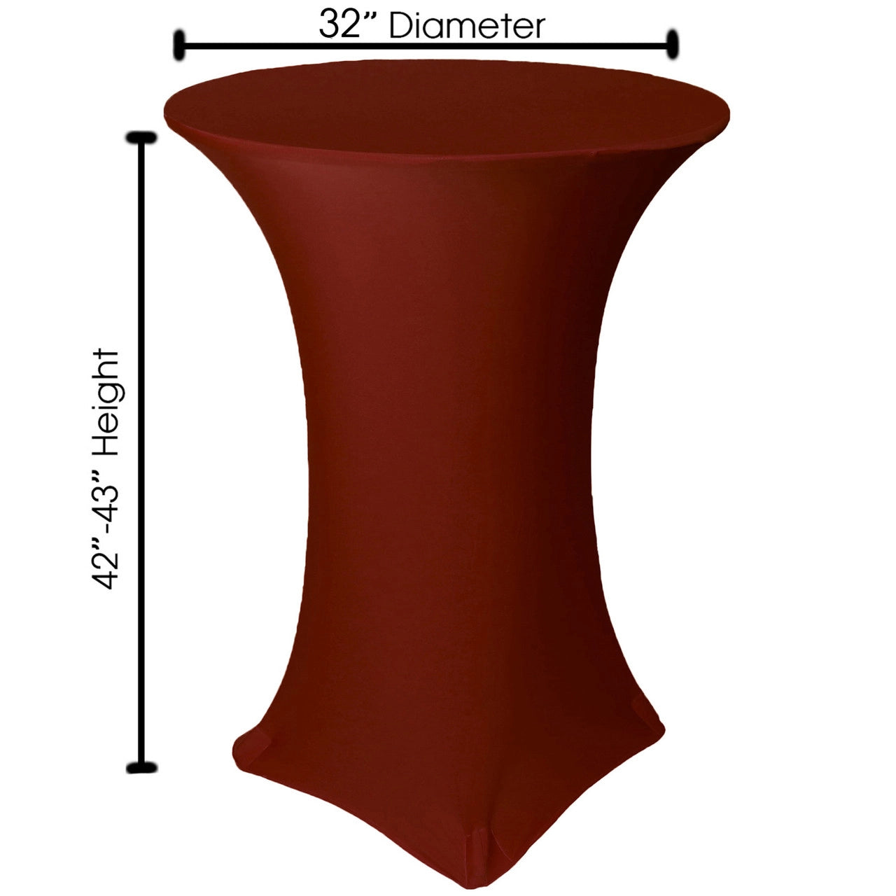 Our durable spandex chair covers fit standard 32"x42" Highboy Tables (32" Round x 42" Tall w/ 4 Leg Base). They're made from high quality spandex with a 4-way stretch so they're easy to put on and made to last. They're also made with durable elastic foot pockets which help secure the cover in place, ensure a great fit, and help prevent damage and excess wear and tear. These covers are a perfect way to improve the look of your chair covers and ideal for rental companies, banquet halls, hotels, various venues and special events.
