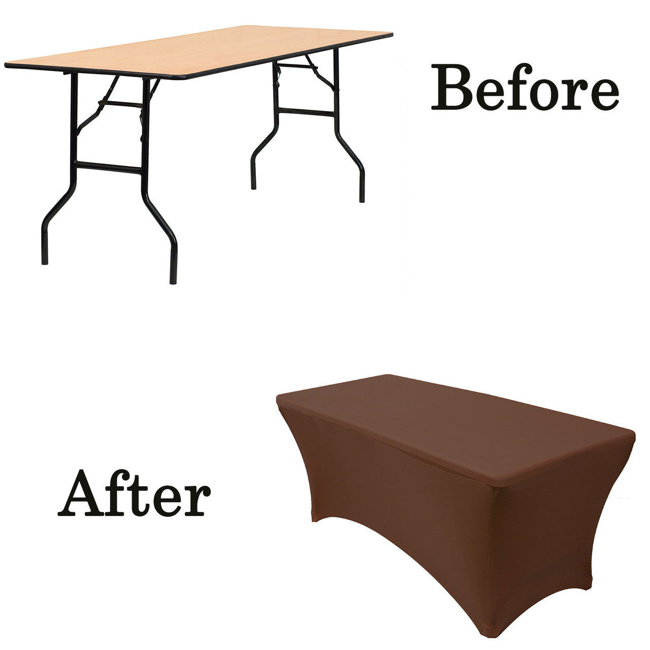 Our durable spandex chair covers fit standard 6' Banquet Tables (4' Length x 30" Depth x 30" Tall). They're made from high quality spandex with a 4-way stretch so they're easy to put on and made to last. They're also made with durable elastic foot pockets which help secure the cover in place, ensure a great fit, and help prevent damage and excess wear and tear. These covers are a perfect way to improve the look of your chair covers and ideal for rental companies, banquet halls, hotels, various venues and special events.