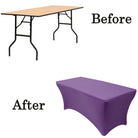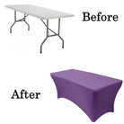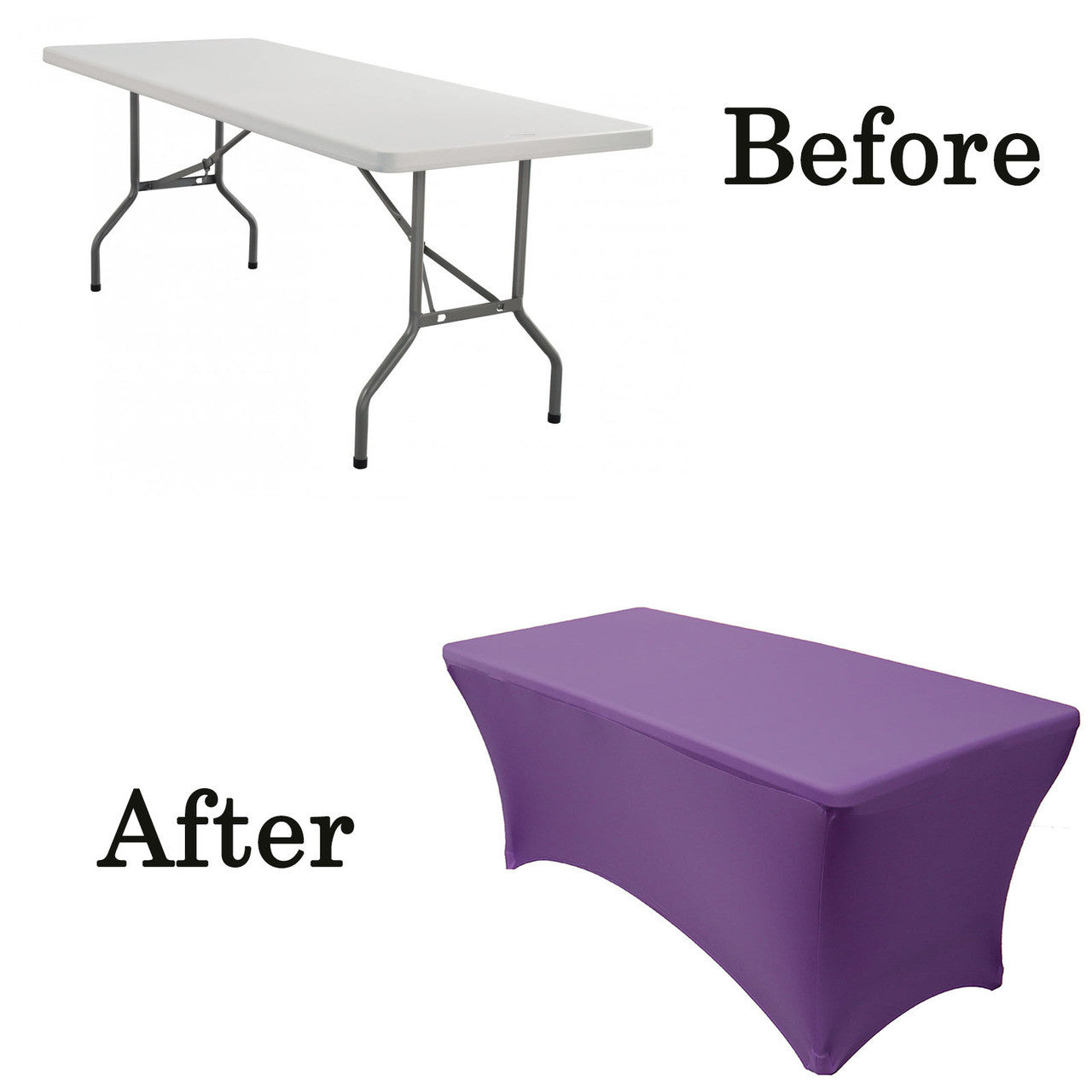 Our durable spandex chair covers fit standard 6' Banquet Tables (4' Length x 30" Depth x 30" Tall). They're made from high quality spandex with a 4-way stretch so they're easy to put on and made to last. They're also made with durable elastic foot pockets which help secure the cover in place, ensure a great fit, and help prevent damage and excess wear and tear. These covers are a perfect way to improve the look of your chair covers and ideal for rental companies, banquet halls, hotels, various venues and special events.
