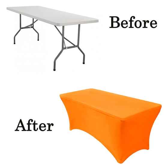 Our durable spandex chair covers fit standard 6' Banquet Tables (5' Length x 30" Depth x 30" Tall). They're made from high quality spandex with a 4-way stretch so they're easy to put on and made to last. They're also made with durable elastic foot pockets which help secure the cover in place, ensure a great fit, and help prevent damage and excess wear and tear. These covers are a perfect way to improve the look of your chair covers and ideal for rental companies, banquet halls, hotels, various venues and special events.