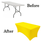 Our durable spandex chair covers fit standard 6' Banquet Tables (5' Length x 30" Depth x 30" Tall). They're made from high quality spandex with a 4-way stretch so they're easy to put on and made to last. They're also made with durable elastic foot pockets which help secure the cover in place, ensure a great fit, and help prevent damage and excess wear and tear. These covers are a perfect way to improve the look of your chair covers and ideal for rental companies, banquet halls, hotels, various venues and special events.