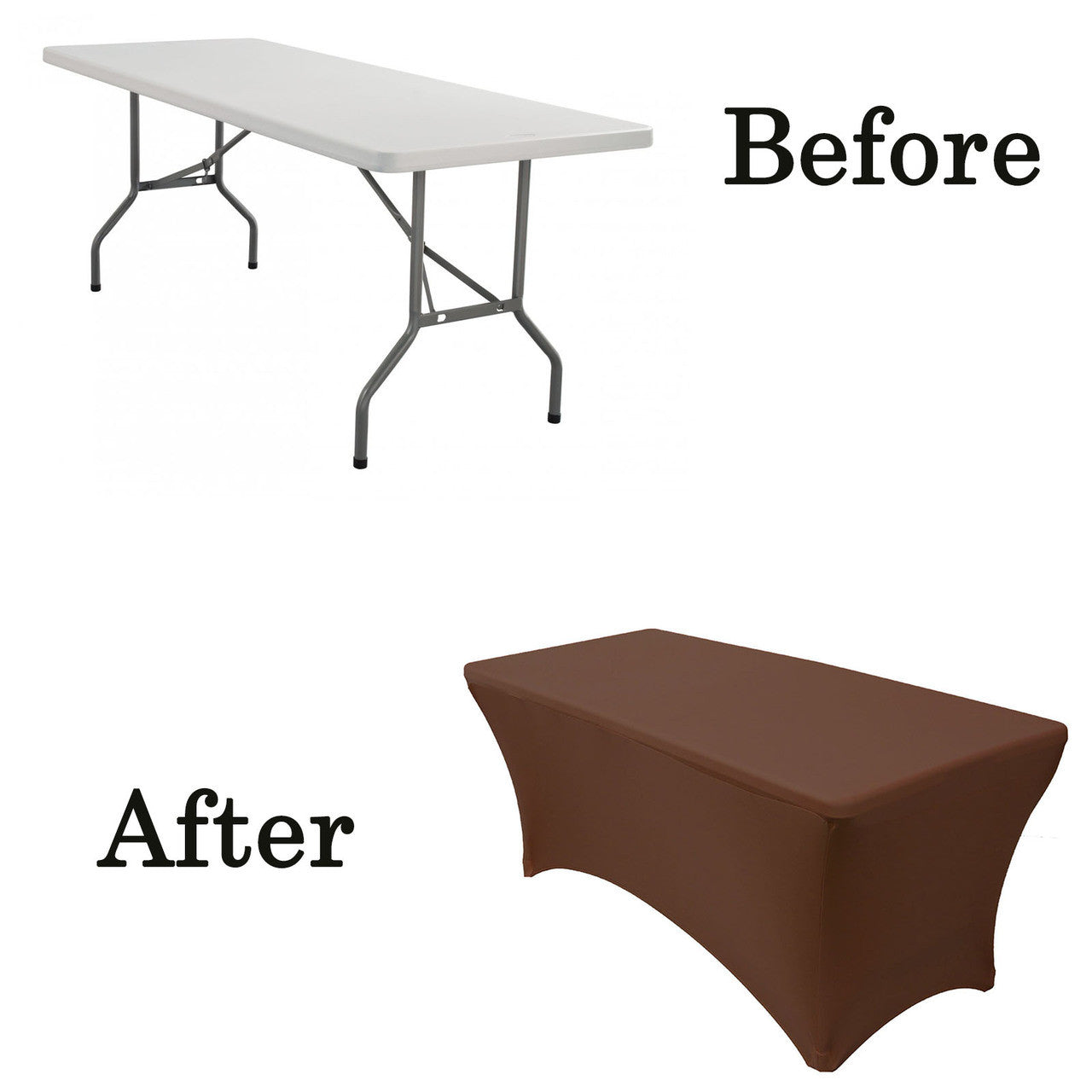 Our durable spandex chair covers fit standard 6' Banquet Tables (6' Length x 30" Depth x 30" Tall). They're made from high quality spandex with a 4-way stretch so they're easy to put on and made to last. They're also made with durable elastic foot pockets which help secure the cover in place, ensure a great fit, and help prevent damage and excess wear and tear. These covers are a perfect way to improve the look of your chair covers and ideal for rental companies, banquet halls, hotels, various venues and special events.