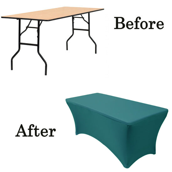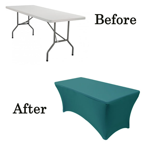 Our durable spandex chair covers fit standard 6' Banquet Tables (6' Length x 30" Depth x 30" Tall). They're made from high quality spandex with a 4-way stretch so they're easy to put on and made to last. They're also made with durable elastic foot pockets which help secure the cover in place, ensure a great fit, and help prevent damage and excess wear and tear. These covers are a perfect way to improve the look of your chair covers and ideal for rental companies, banquet halls, hotels, various venues and special events.