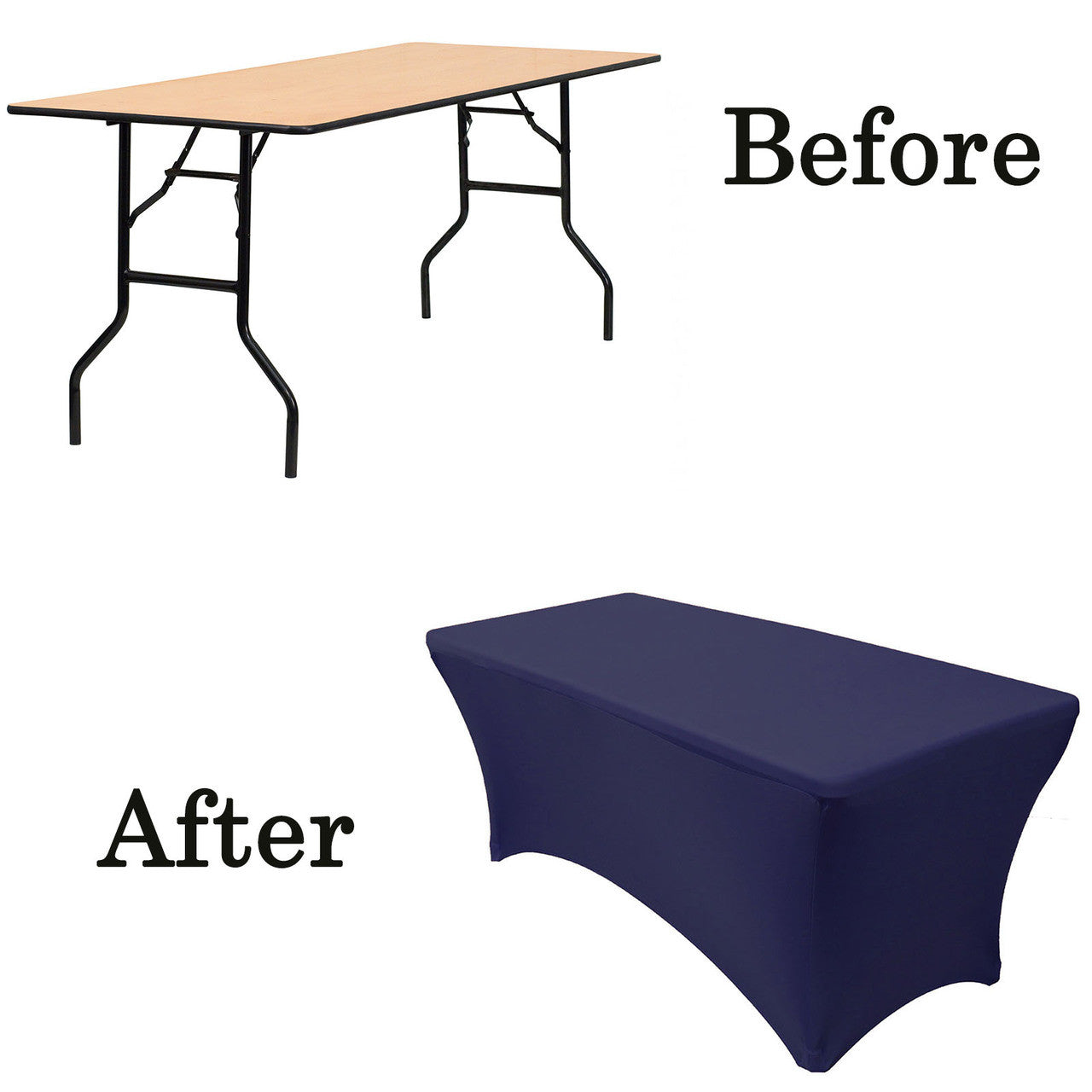 Our durable spandex chair covers fit standard 8' Banquet Tables (8' Length x 30" Depth x 30" Tall). They're made from high quality spandex with a 4-way stretch so they're easy to put on and made to last. They're also made with durable elastic foot pockets which help secure the cover in place, ensure a great fit, and help prevent damage and excess wear and tear. These covers are a perfect way to improve the look of your chair covers and ideal for rental companies, banquet halls, hotels, various venues and special events.