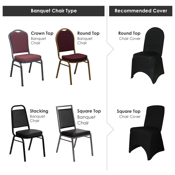 Our durable spandex chair covers fit almost all industry standard banquet chairs. They're made from high quality spandex with a 4-way stretch so they're easy to put on and made to last. They're also made with durable elastic foot pockets which help secure the cover in place, ensure a great fit, and help prevent damage and excess wear and tear. These covers are a perfect way to improve the look of your chair covers and ideal for rental companies, banquet halls, hotels, various venues and special events.