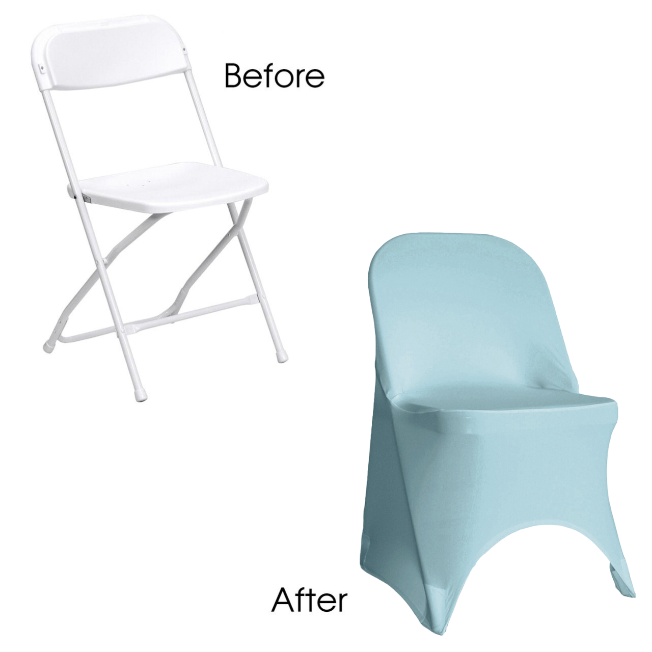 Our durable spandex chair covers fit almost all industry standard folding chairs. They're made from high quality spandex with a 4-way stretch so they're easy to put on and made to last. They're also made with durable elastic foot pockets which help secure the cover in place, ensure a great fit, and help prevent damage and excess wear and tear. These covers are a perfect way to improve the look of your chair covers and ideal for rental companies, banquet halls, hotels, various venues and special events.