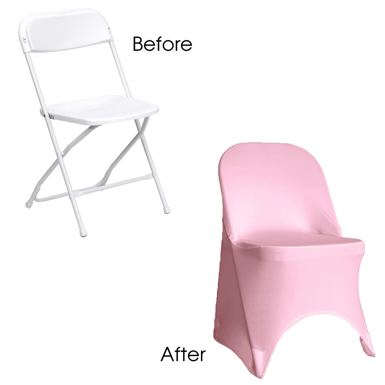 Our durable spandex chair covers fit almost all industry standard folding chairs. They're made from high quality spandex with a 4-way stretch so they're easy to put on and made to last. They're also made with durable elastic foot pockets which help secure the cover in place, ensure a great fit, and help prevent damage and excess wear and tear. These covers are a perfect way to improve the look of your chair covers and ideal for rental companies, banquet halls, hotels, various venues and special events.