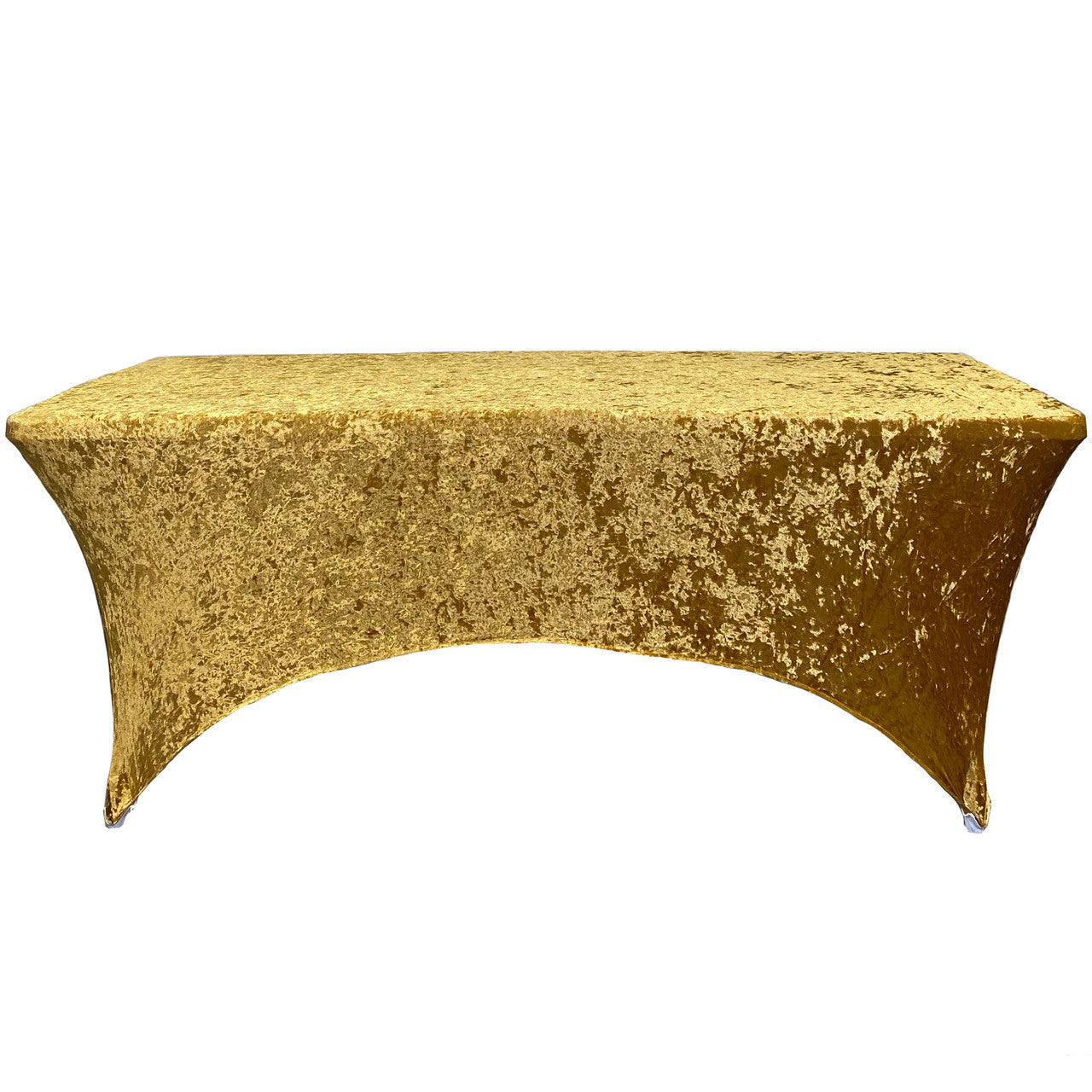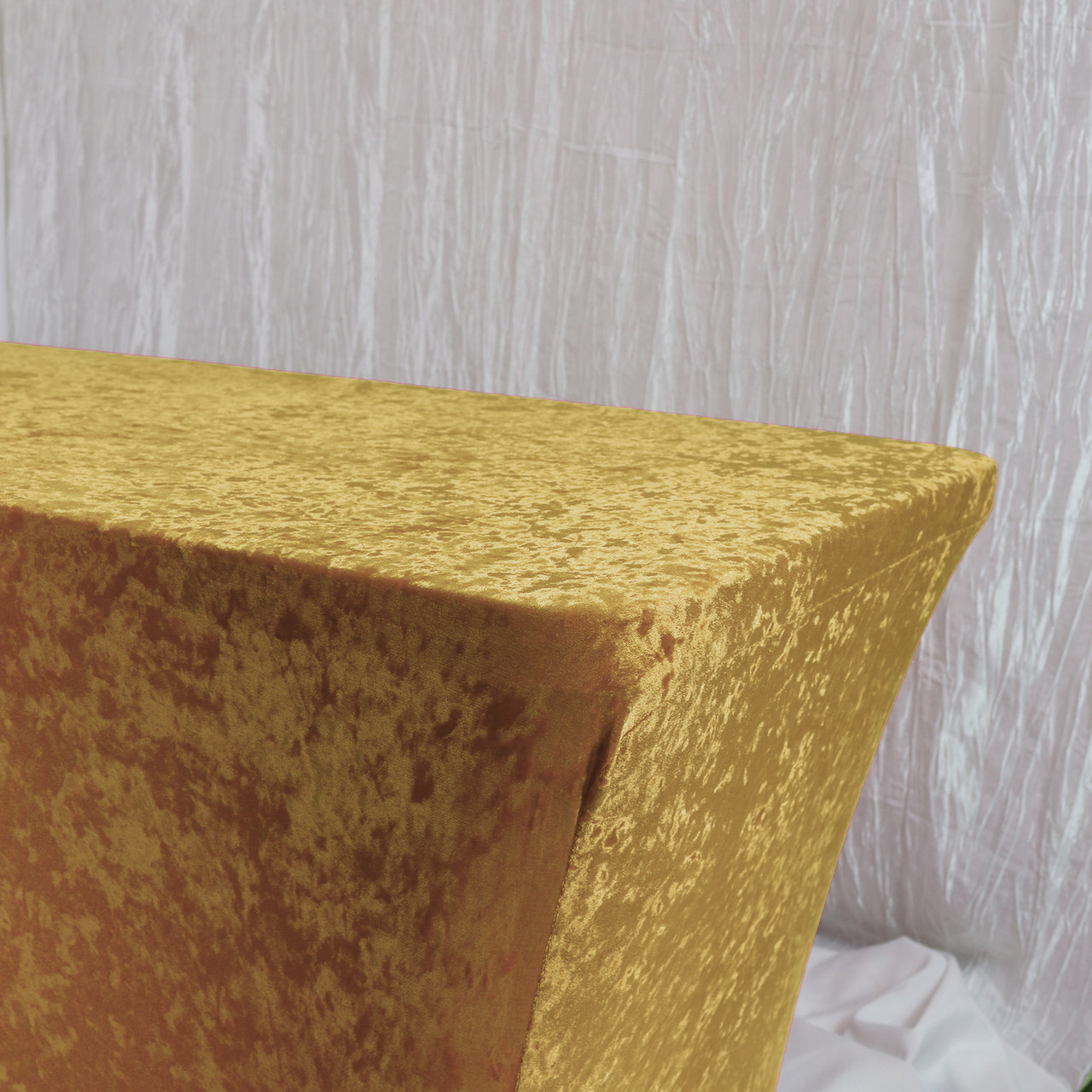 Velvet Spandex (6'x30") Banquet Table Cover in Gold