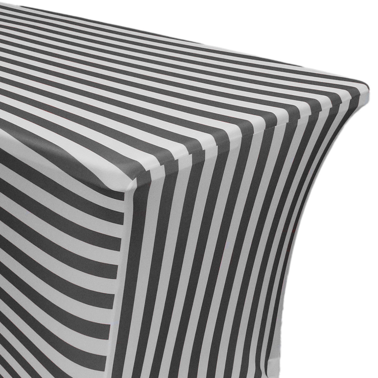 Print Spandex (6'x30") Banquet Table Cover in Black and White Striped