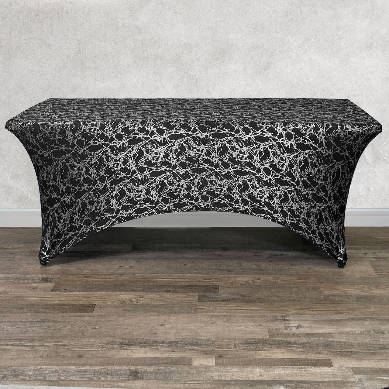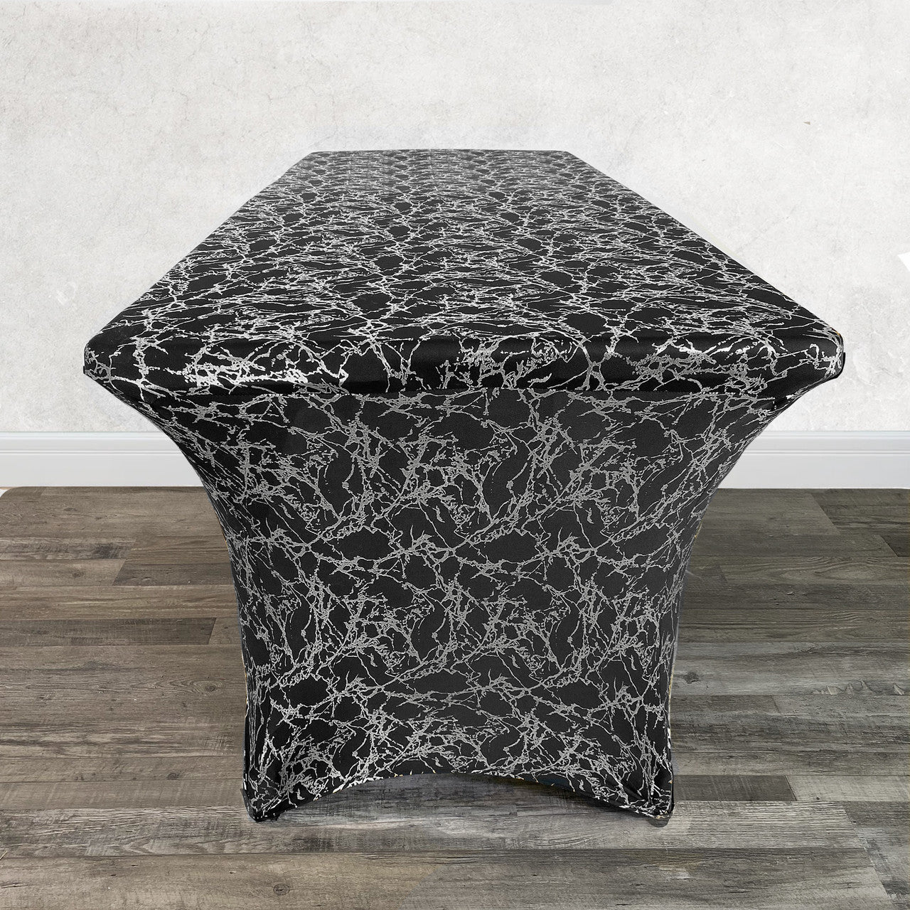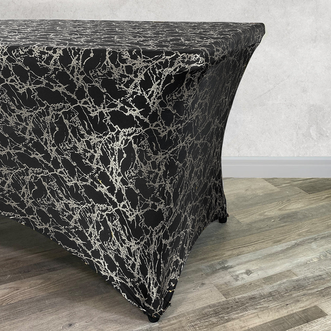 Print Spandex (8'x30") Banquet Table Cover in Black with Silver Marbling
