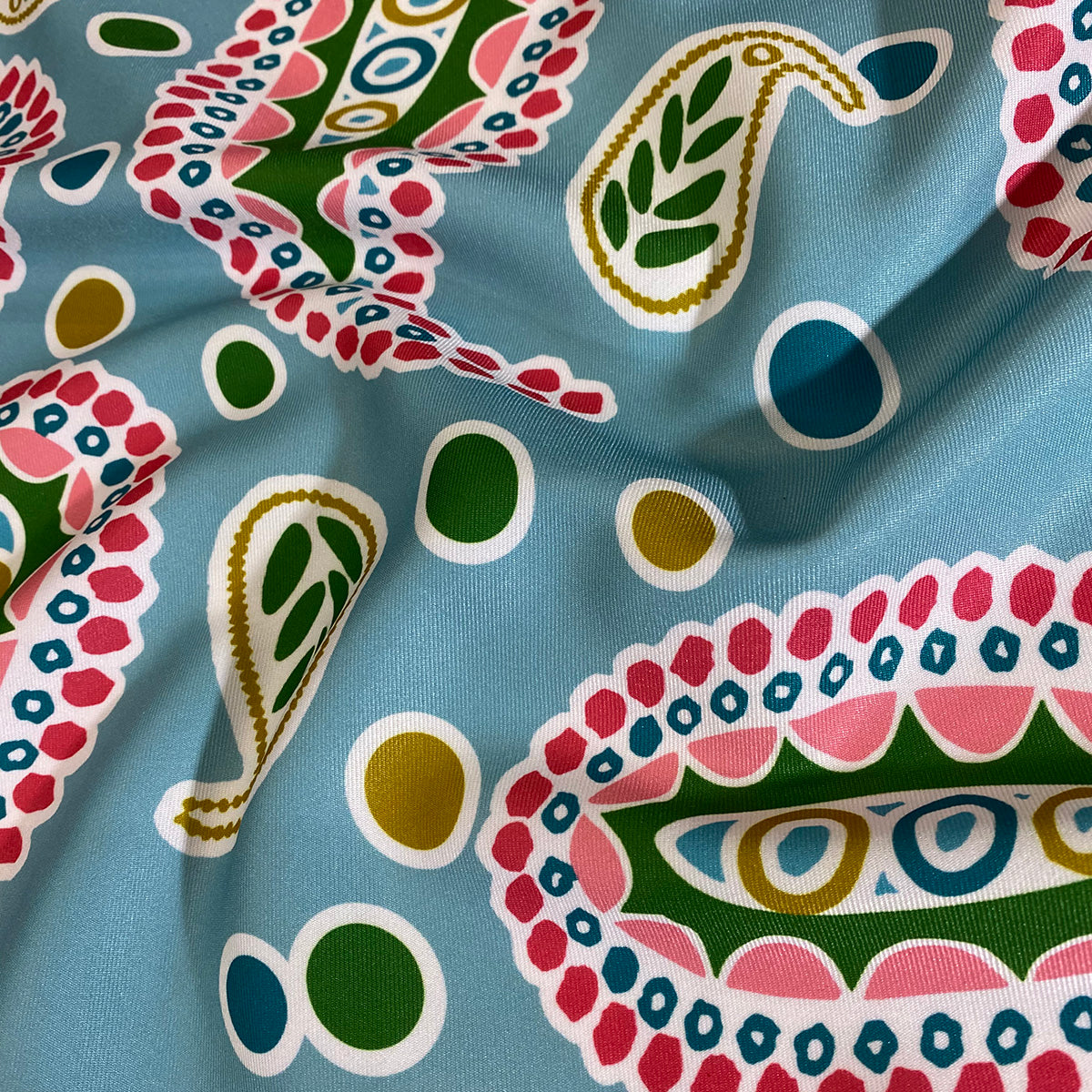 Fabric Collection: This fabric is a Polyester base with a uniquely colored paisley design throughout.