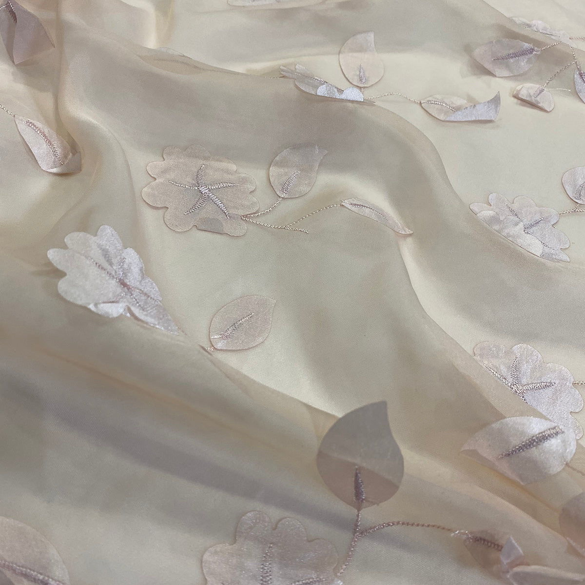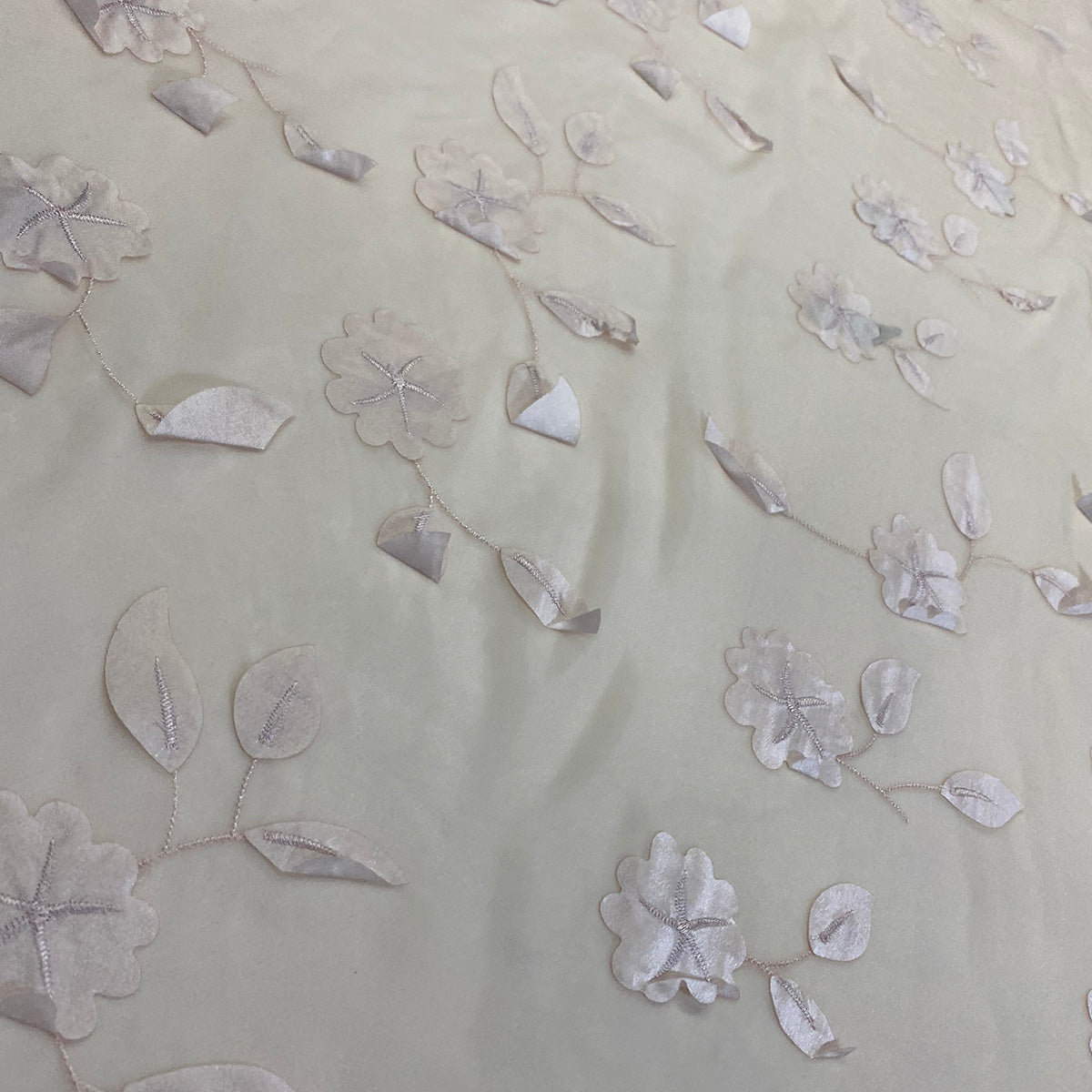 Fabric Collection: This Fabric is a Voile base w/ a floral and petaled leaf embroidered.
