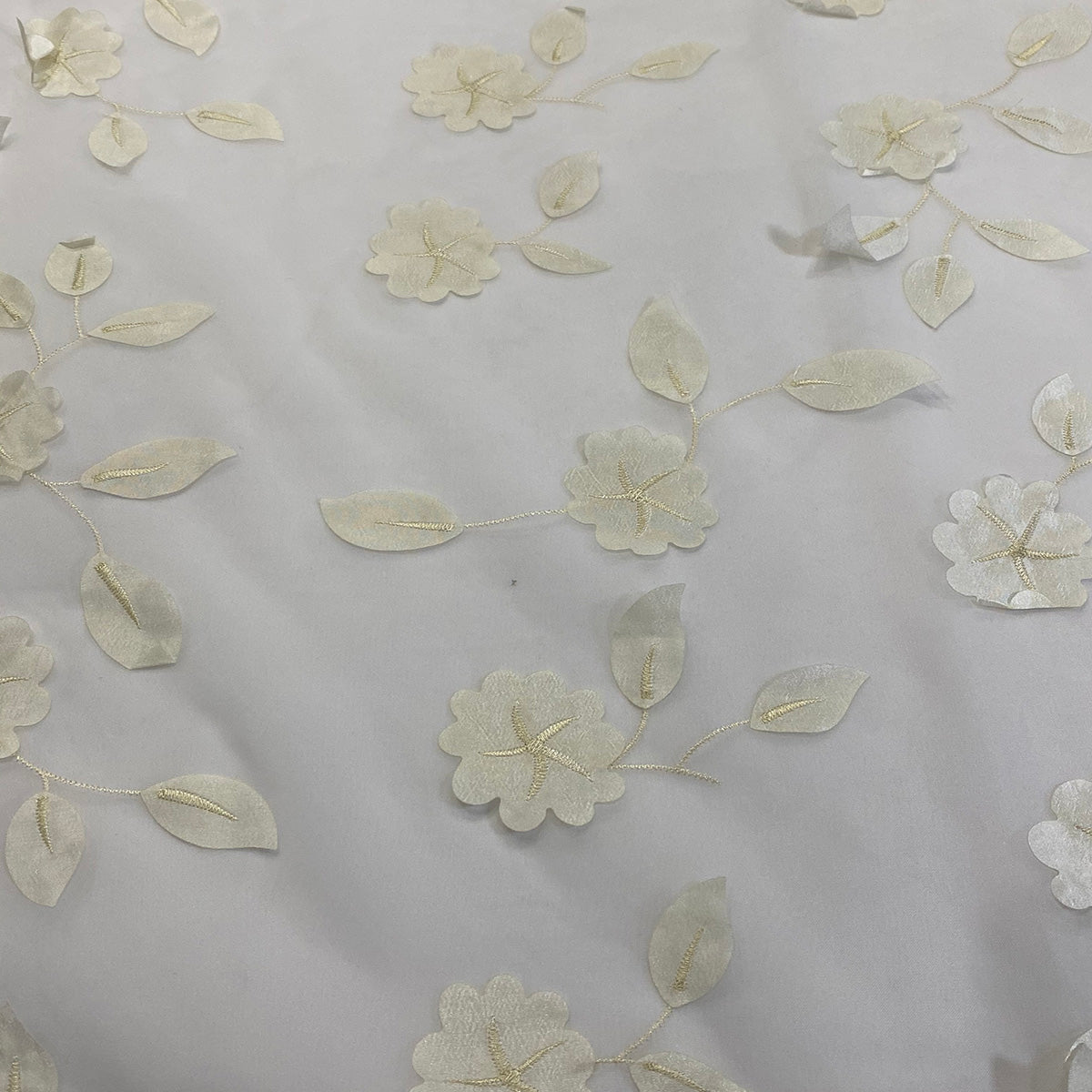 Fabric Collection: This Fabric is a Voile base w/ a floral and petaled leaf embroidered.