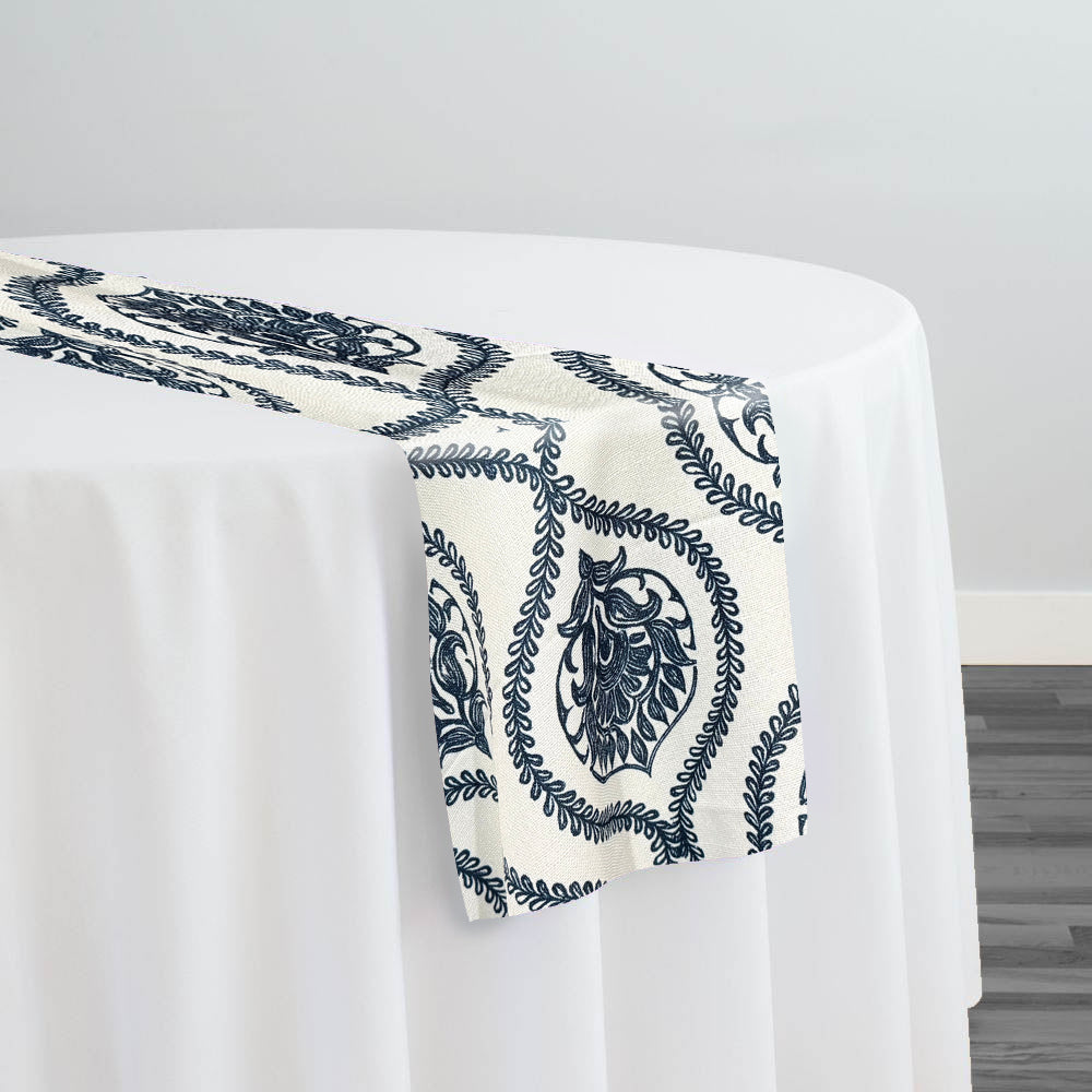 Fabric Collection: Mayfair (Slub Print) is a premium slubby, linen-inspired fabric featuring a refined ornamental pattern created through high-quality digital printing. The textured base provides a natural look and elegant drape, making it a sophisticated choice for elevated event décor.