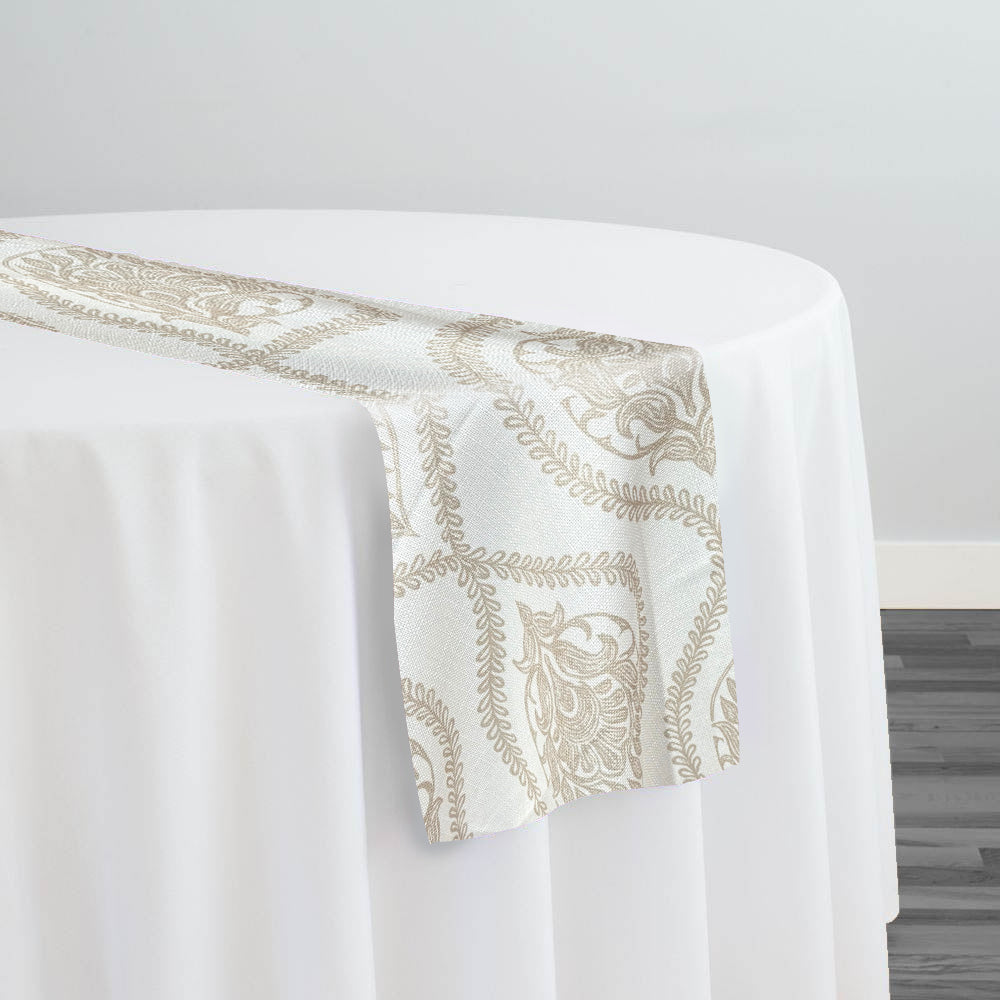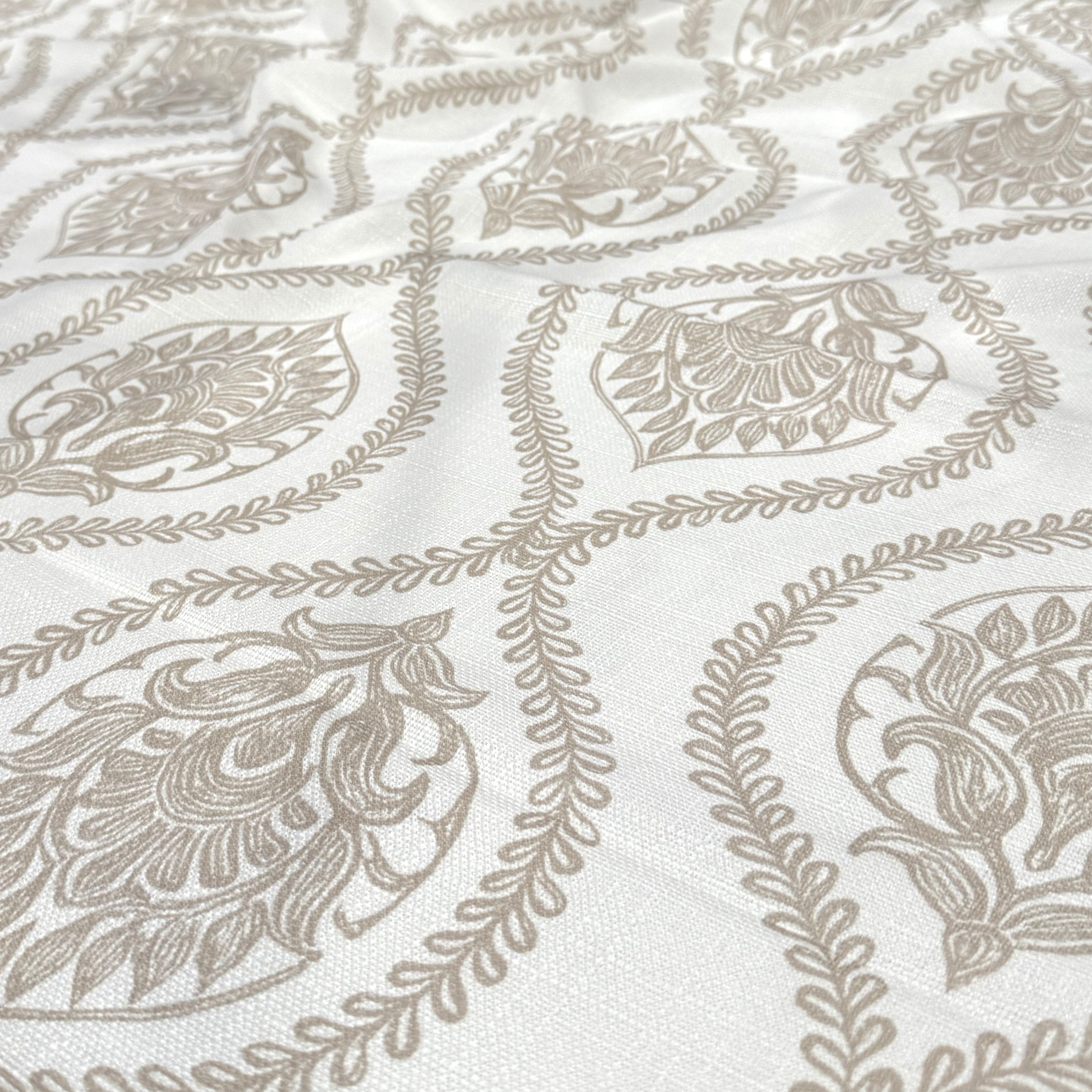 Fabric Collection: Mayfair (Slub Print) is a premium slubby, linen-inspired fabric featuring a refined ornamental pattern created through high-quality digital printing. The textured base provides a natural look and elegant drape, making it a sophisticated choice for elevated event décor.