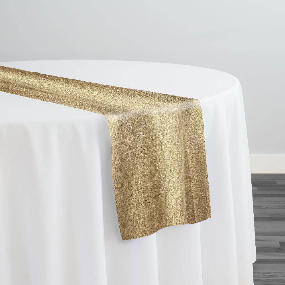 Metallic Burlap Table Runner in Khaki/Gold