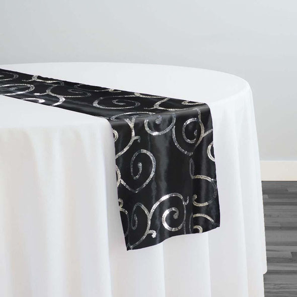 Swirl Sequins Taffeta Table Runner in Silver and Black