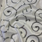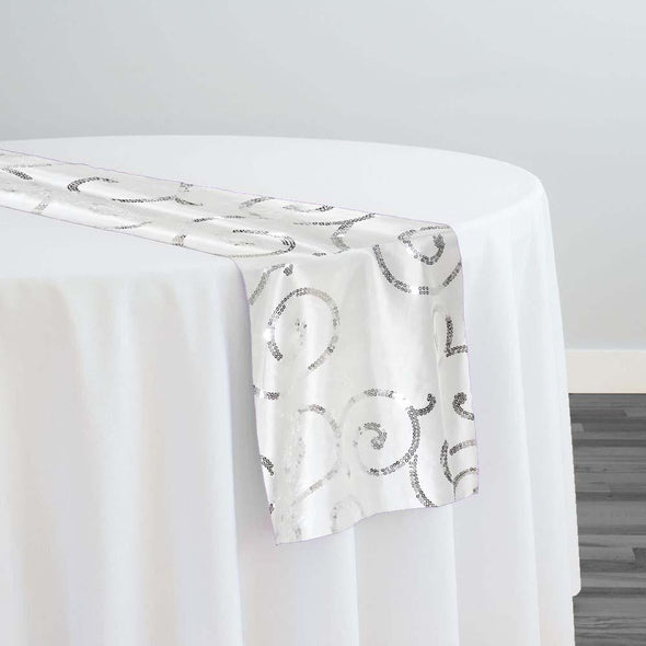 Swirl Sequins Taffeta Table Runner in Silver and White