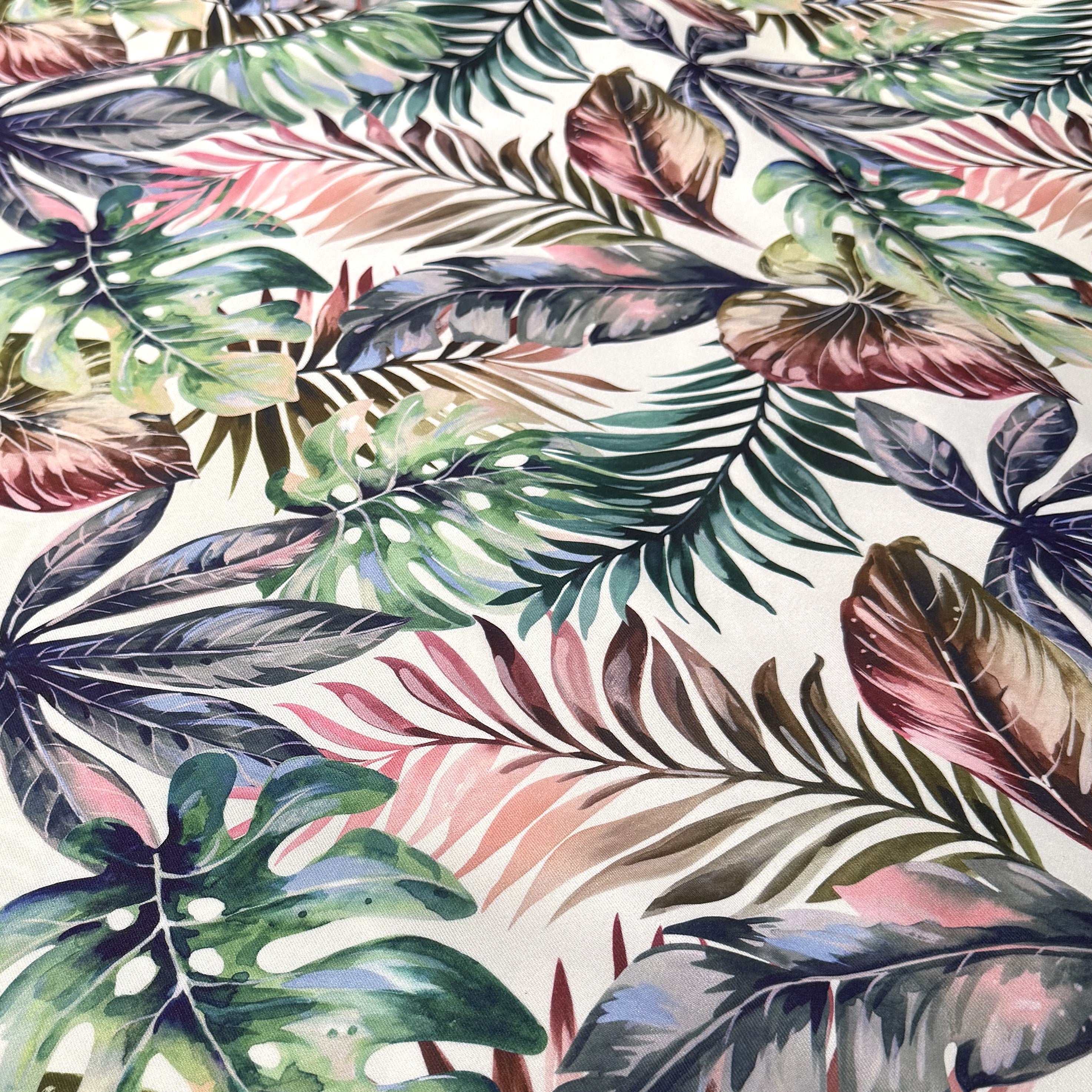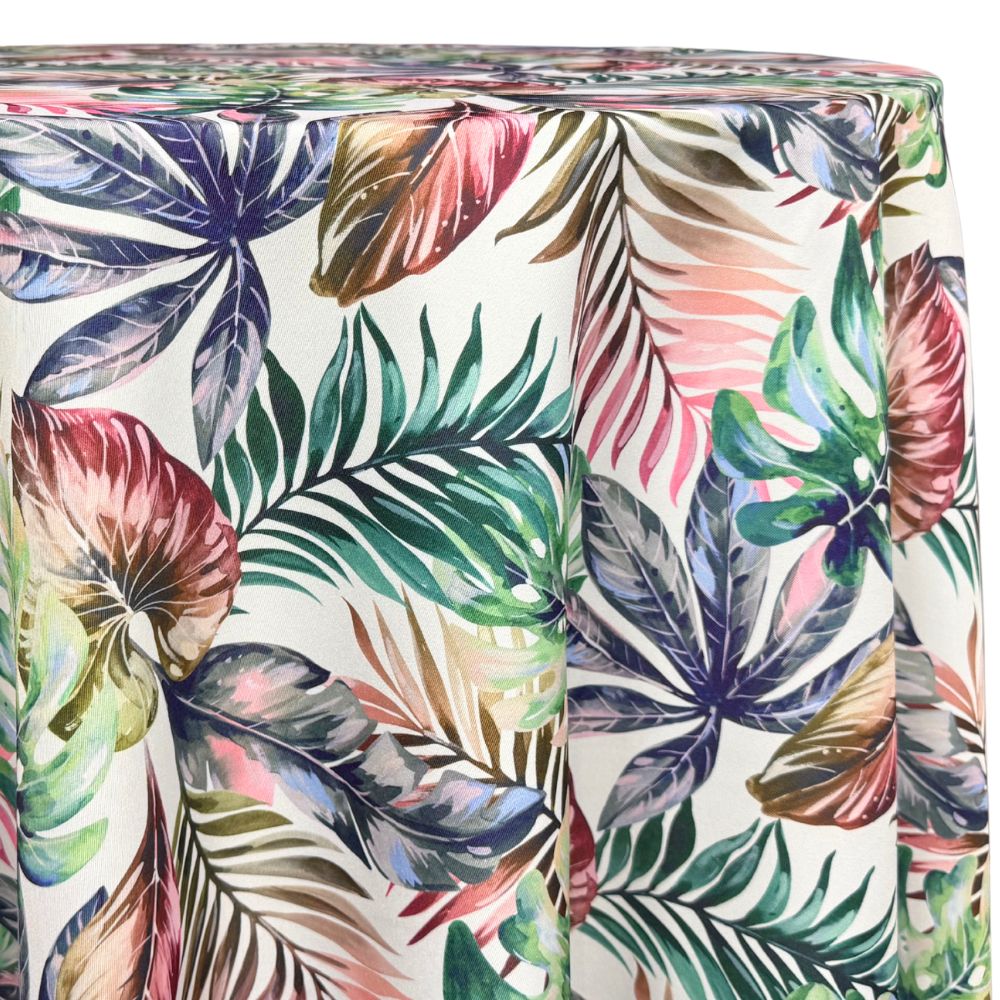 Fabric Collection: Bring island-inspired style to your décor with our Artisan Tropical (Poly Print) fabric. A vibrant tropical leaf print on durable polyester twill. Perfect for tablecloths, runners, napkins, and drapes, it’s wrinkle-resistant, easy to maintain, and ideal for weddings, special events, hotels, and event rental companies.