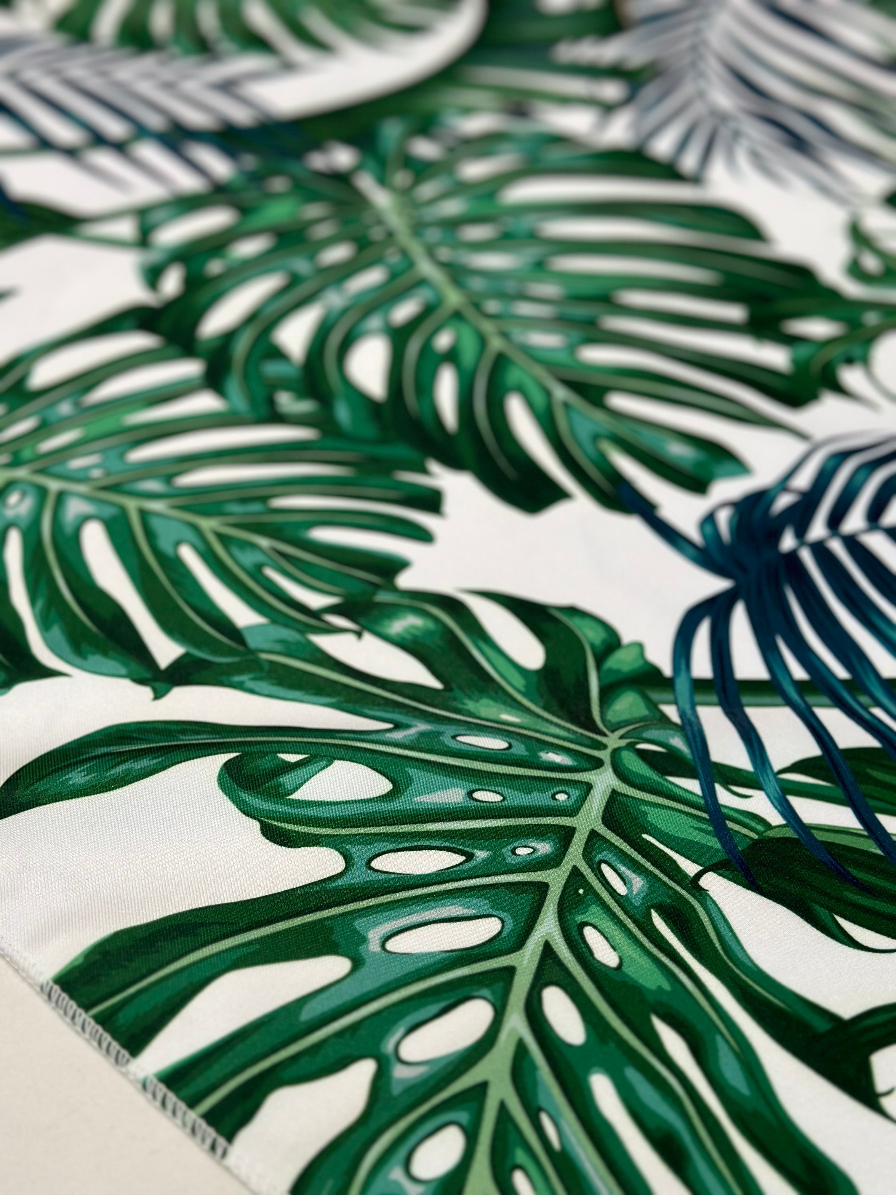 Fabric Collection: This fabric is a 100% polyester base with our "Bahamas" palm print throughout the fabric.