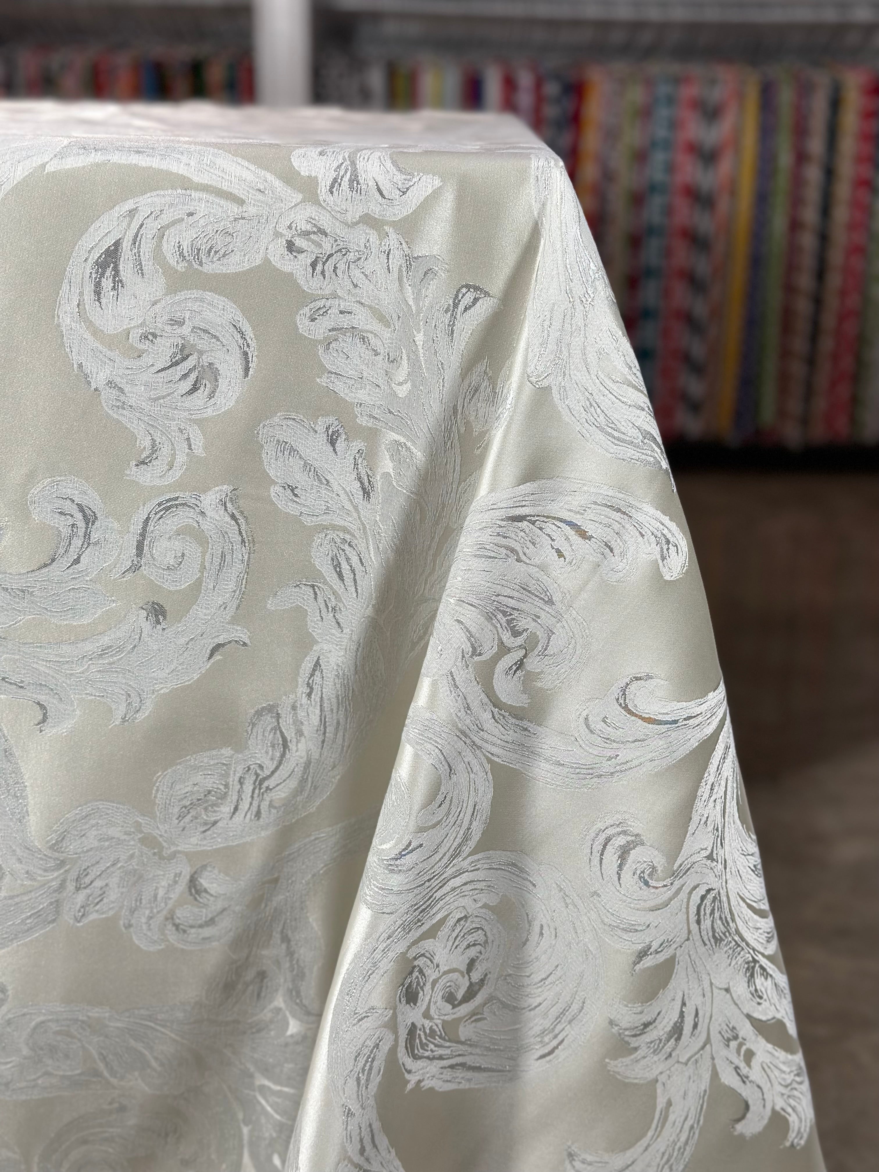 Table linen sizes that exceed the width of the fabric will have seams. All seams are sewn with 5 thread overlock sergers for long lasting durability.
