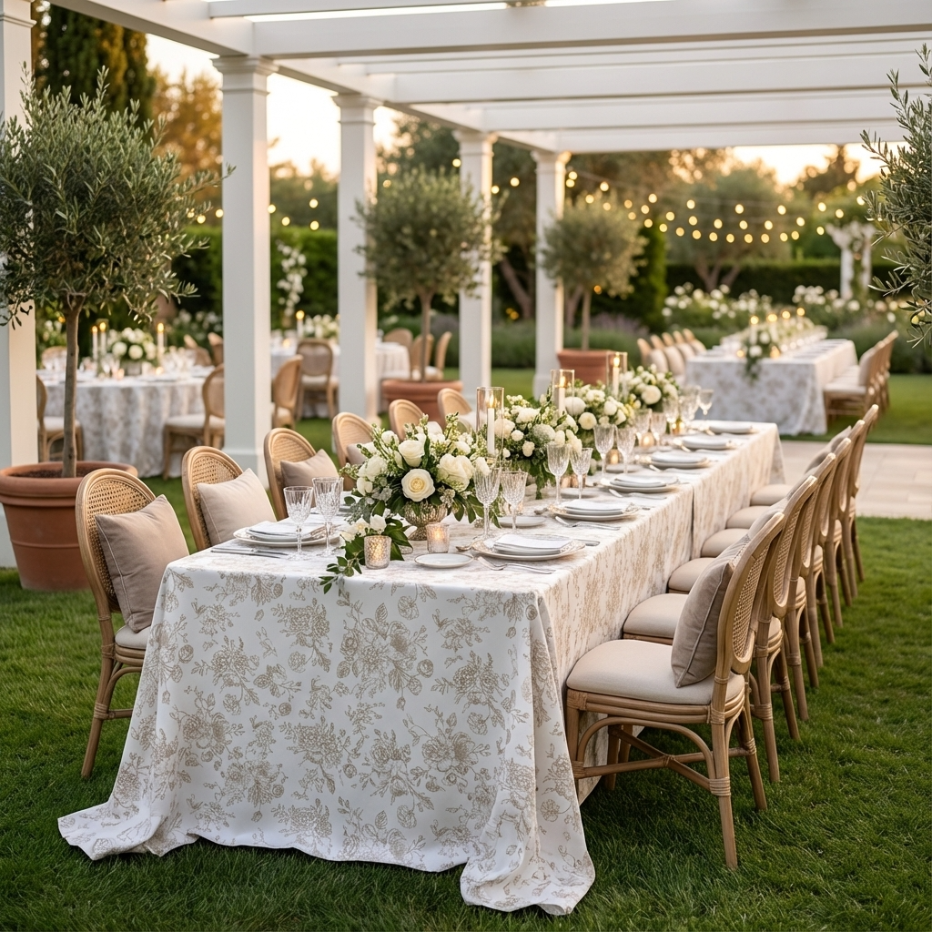 • All table linen (tablecloths, overlays, napkins runners, skirting etc),