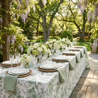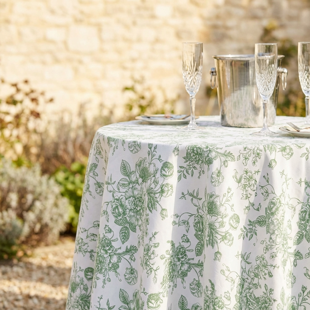 French Toile (Poly Print) Table Linen in Willow Green