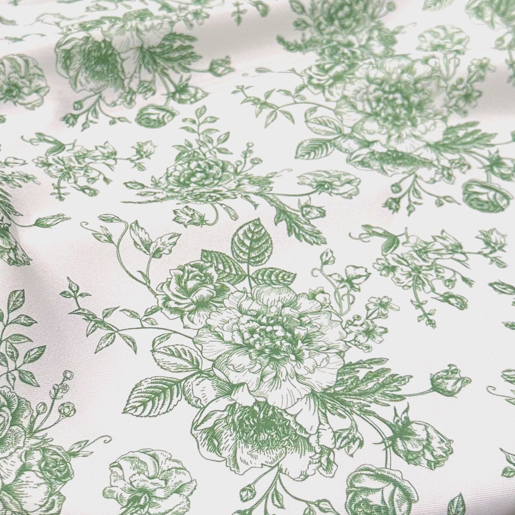Fabric Collection: This fabric has a polyester base with our "French Toile" print in our Willow Green color throughout.