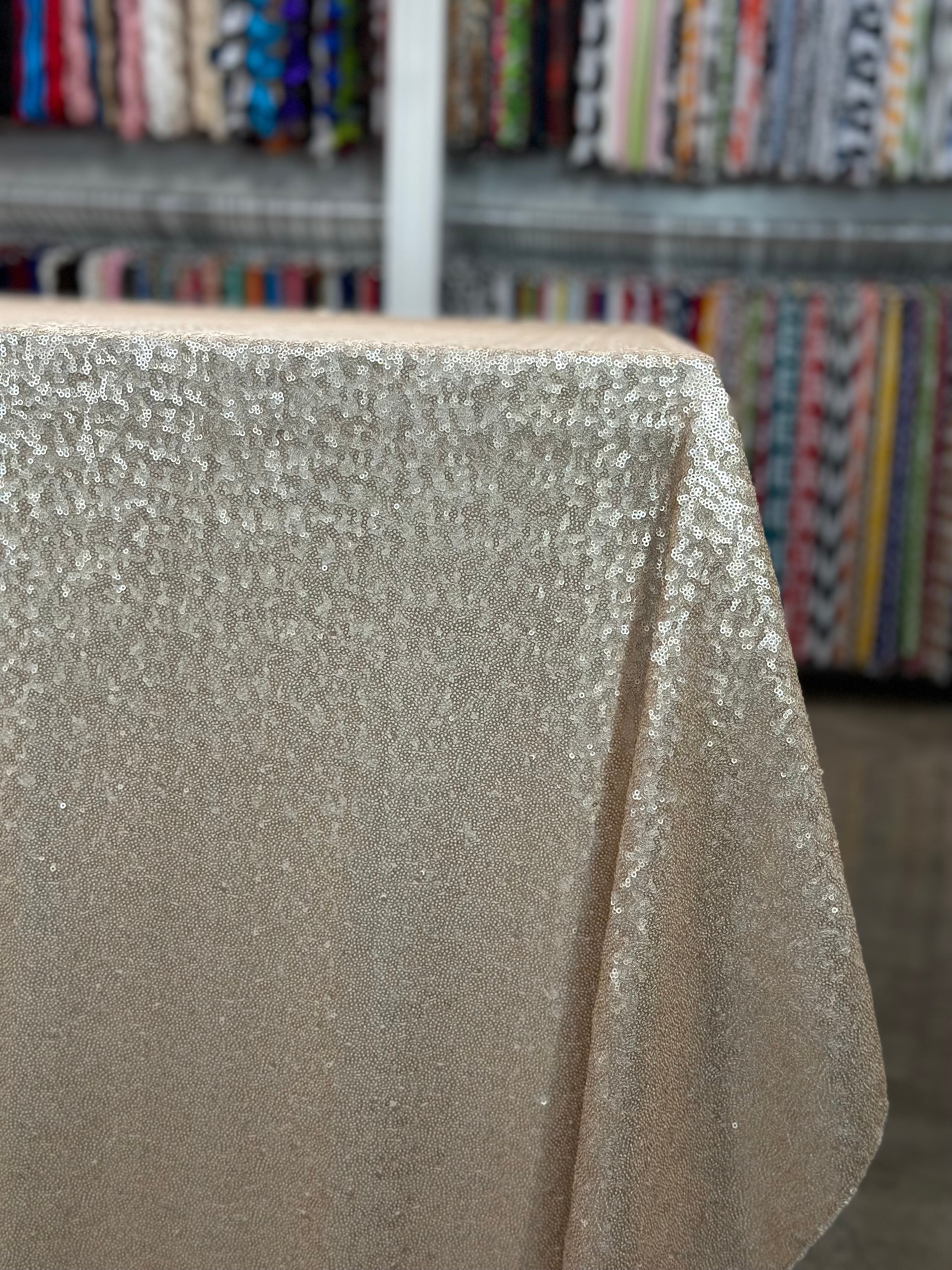 Table linen sizes that exceed the width of the fabric will have seams. All seams are sewn with 5 thread overlock sergers for long lasting durability.