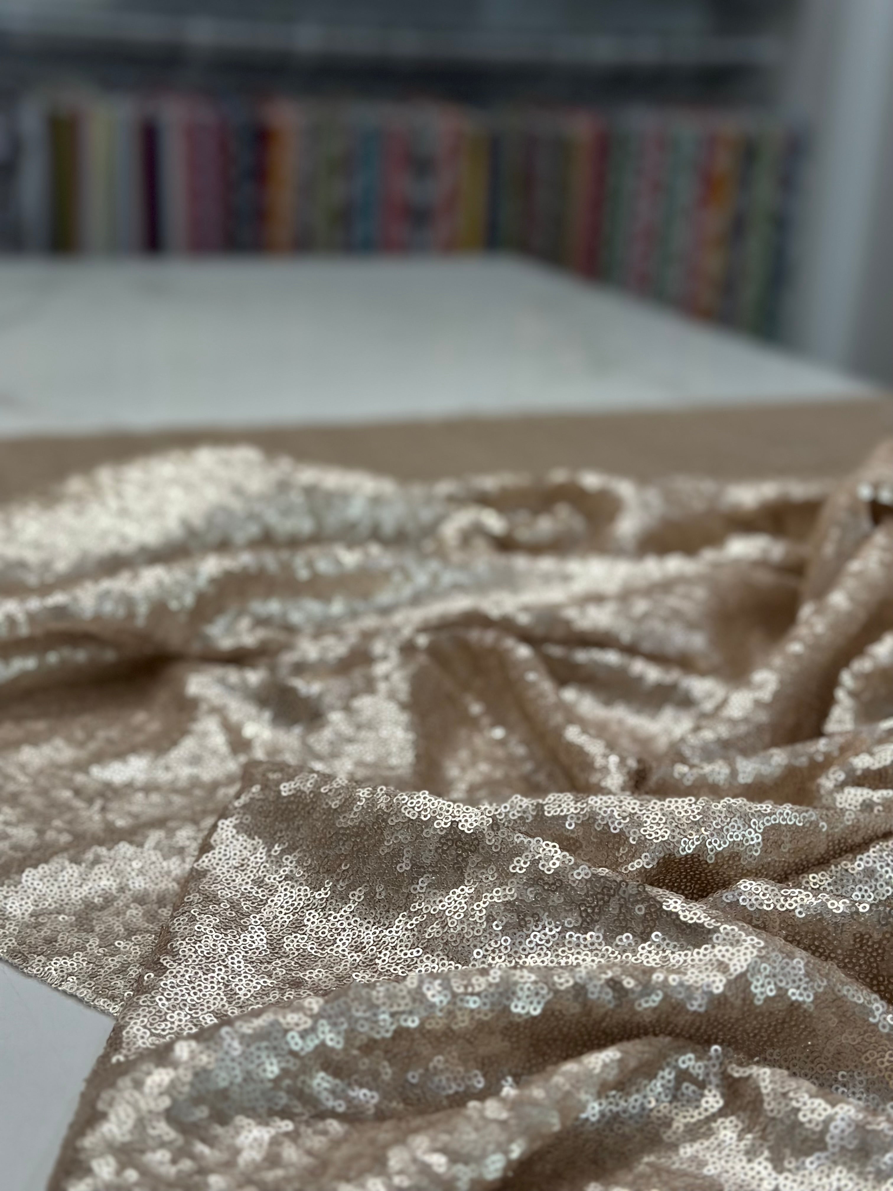 Fabric Collection: This fabric has a mesh base w/ mini sequins clusters embroidered throughout the fabric which gives it a solid look.