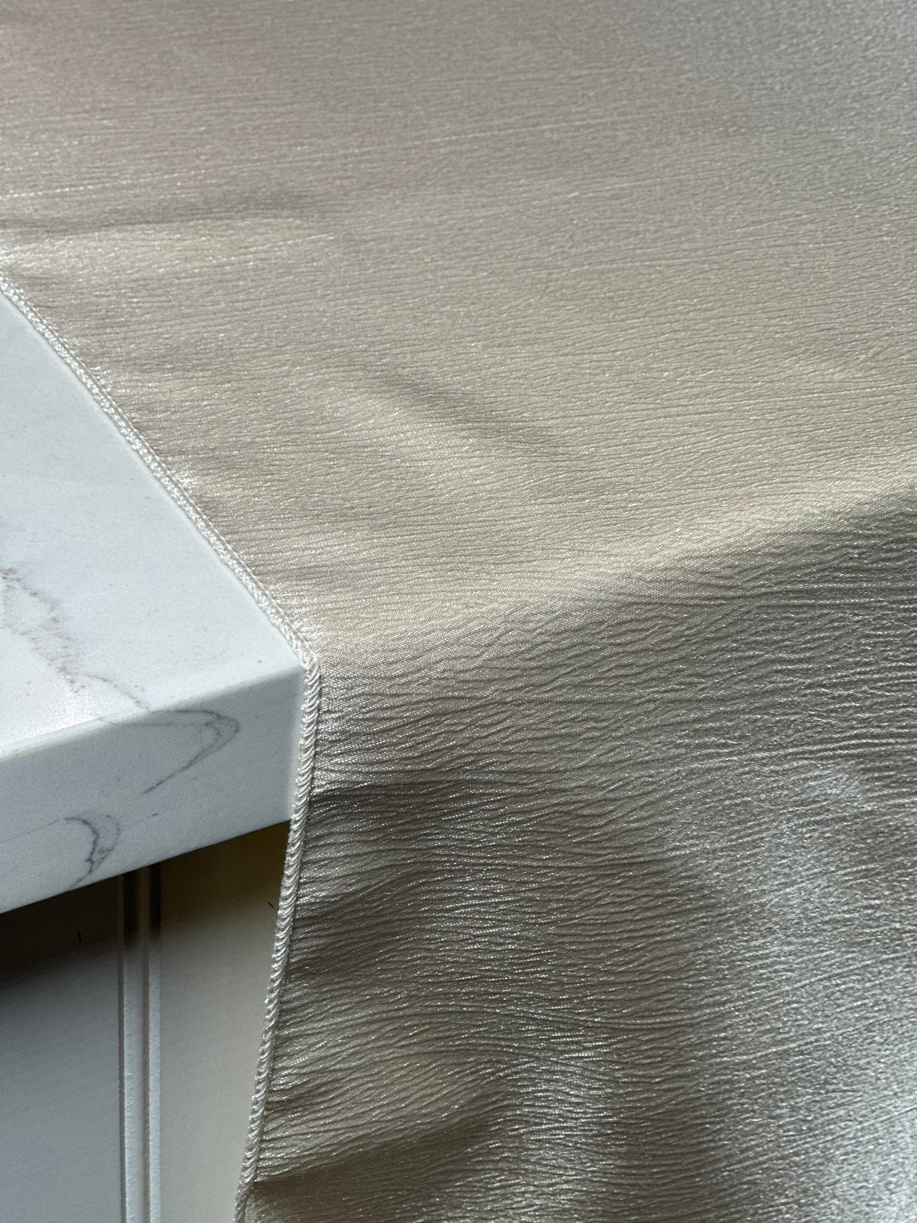 Table linen sizes that exceed the width of the fabric will have seams. All seams are sewn with 5 thread overlock sergers for long lasting durability.