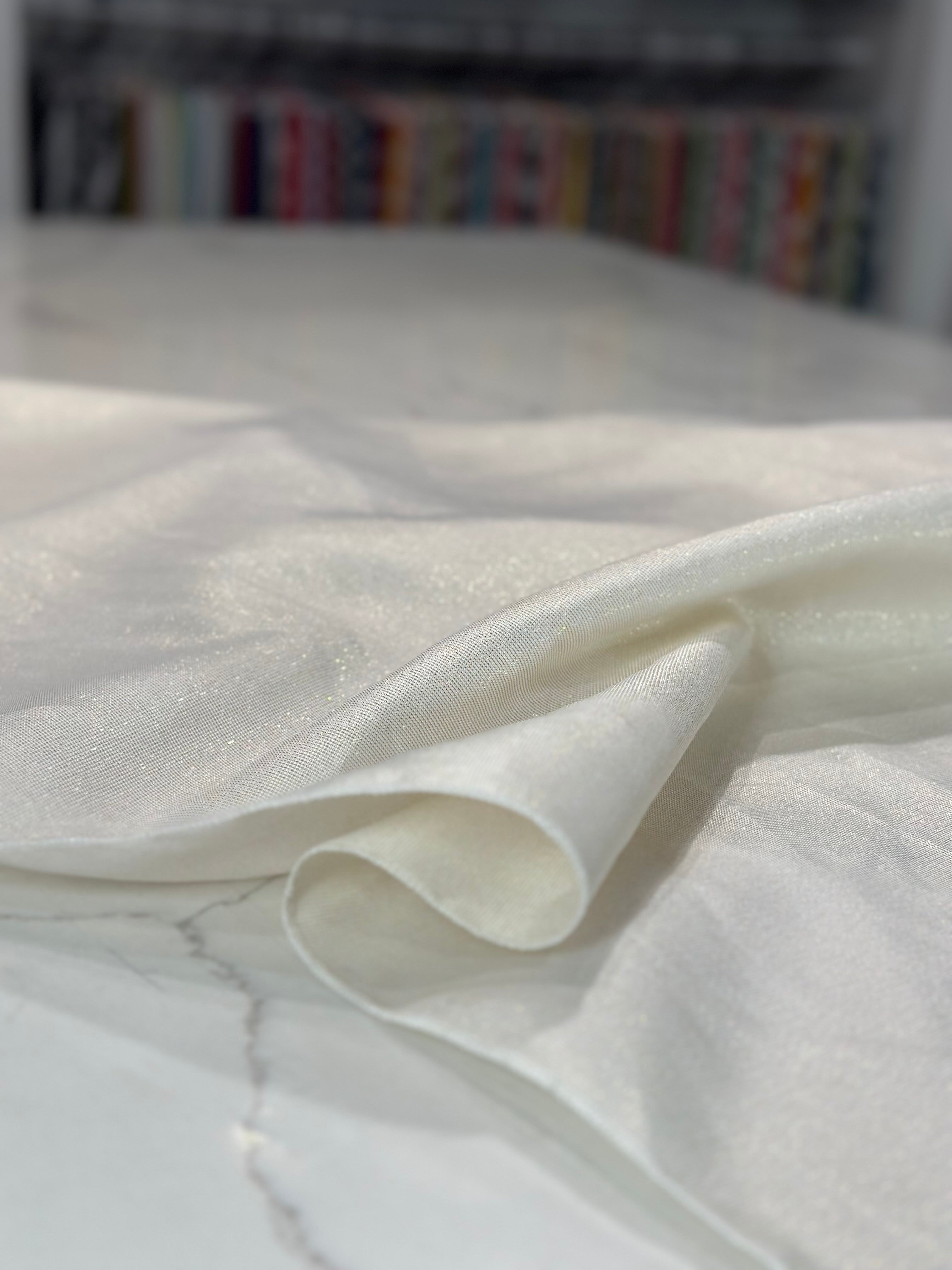 Metallic Burlap Table Linen in Ivory/Gold