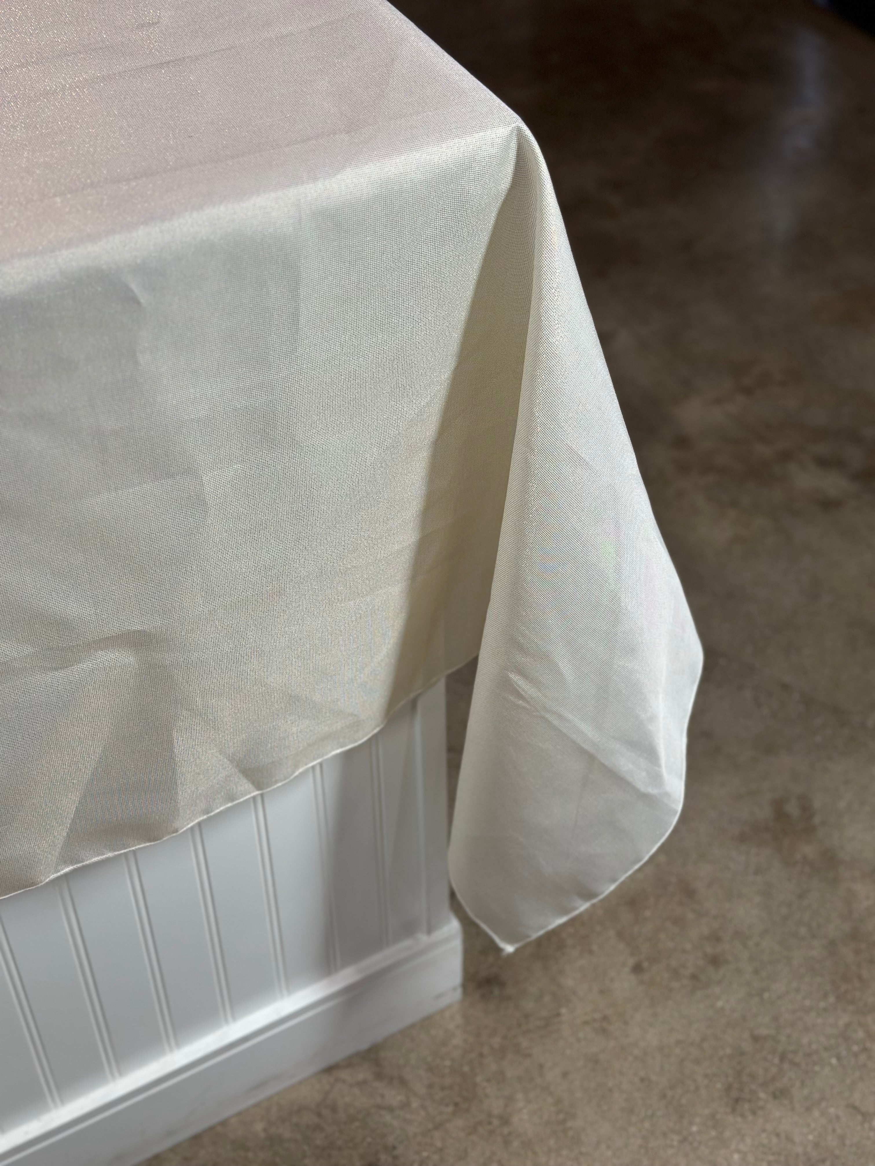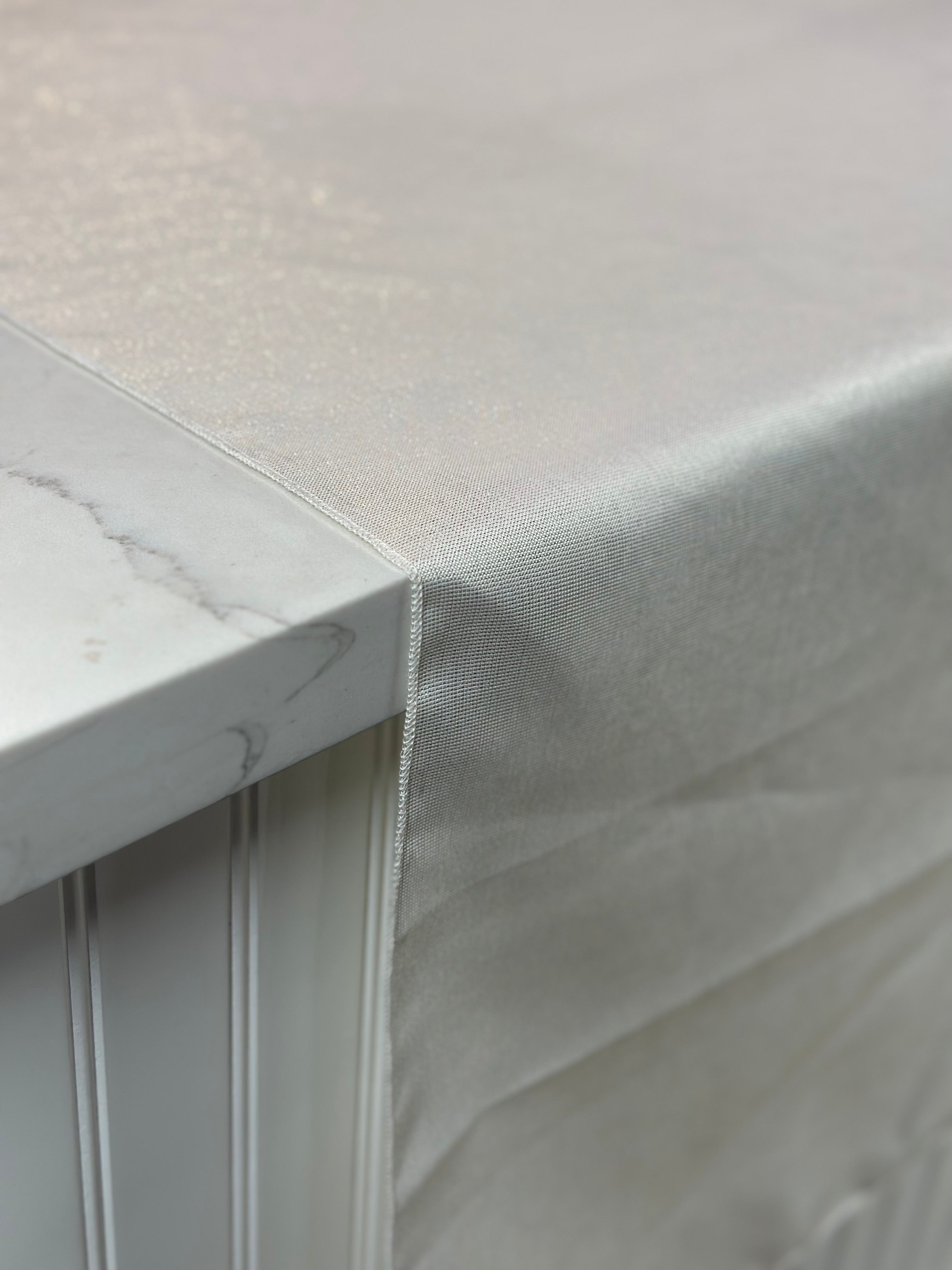 Table linen sizes that exceed the width of the fabric will have seams. All seams are sewn with 5 thread overlock sergers for long lasting durability.