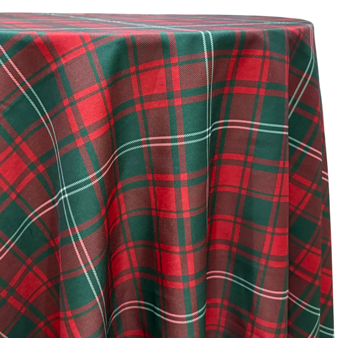 Bring festive elegance to your event with the Hollyridge plaid, featuring a rich red and green tartan pattern accented with subtle white detailing. Perfect for holiday celebrations, rustic gatherings, or cozy seasonal weddings, this fabric is available as tablecloths, runners, napkins, and drapes. Both durable and versatile, the Hollyridge plaid is a timeless choice for event professionals and rental companies looking to add warmth and tradition to any occasion.