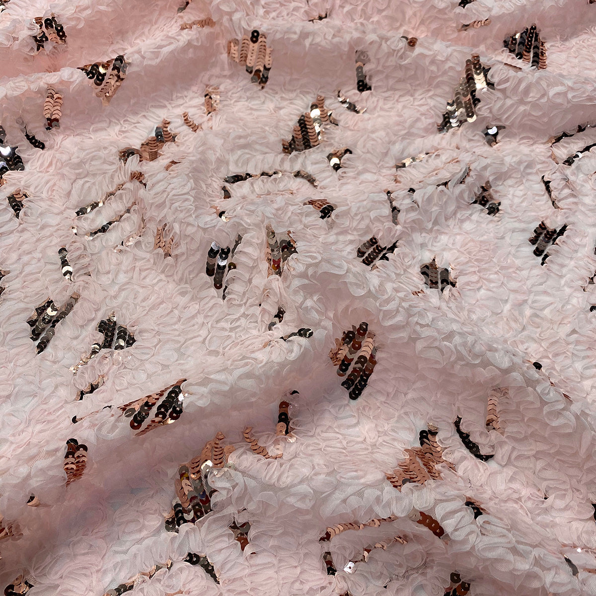 Fabric Collection: This fabric has a mesh/sheer base w/ a ribbon and sequined design throughout.