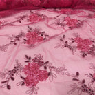 7pcs - Ribbon Mesh Lace Table Linen 132" Round - Fuchsia