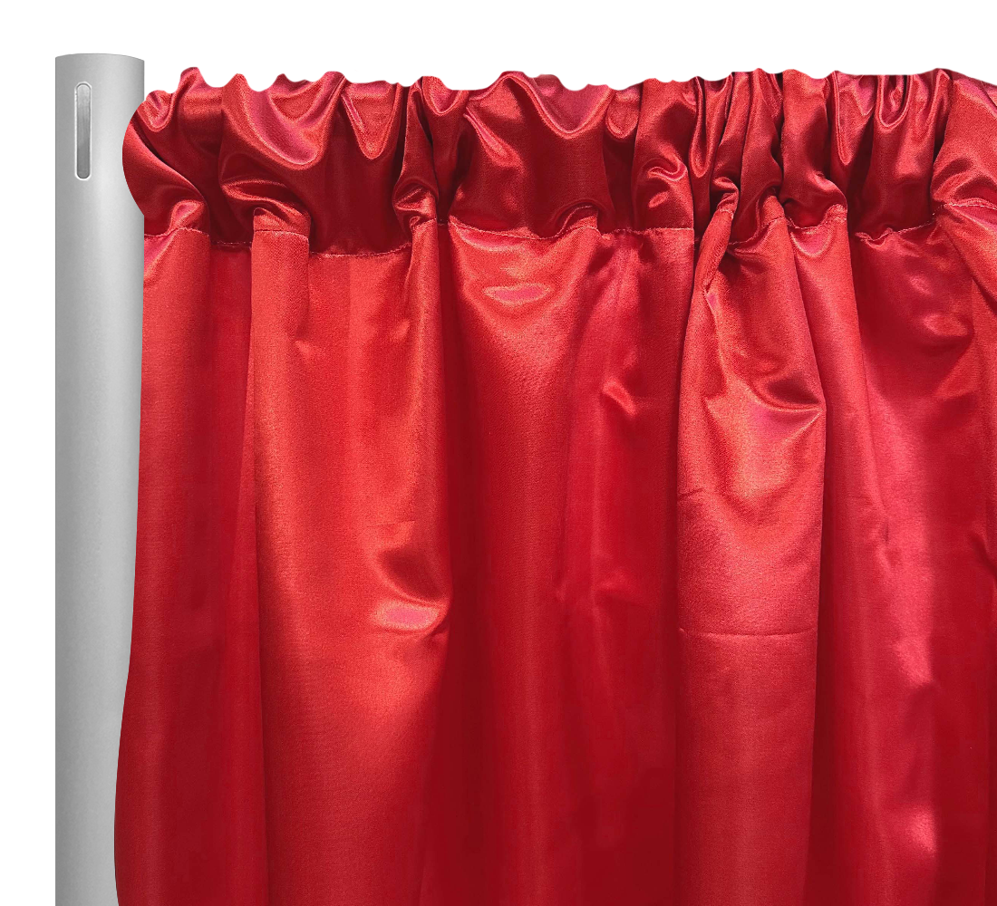 SIZE OPTIONS: Select your desired panel height above. Panels are approx. 58" wide and come standard with a 4" Rod Pocket on top. You can add a bottom Rod Pocket for an additional $5.00 per panel. Our drapes will work on any of our Pipe & Drape systems. Contact us at 800-590-9508 for custom sizing.