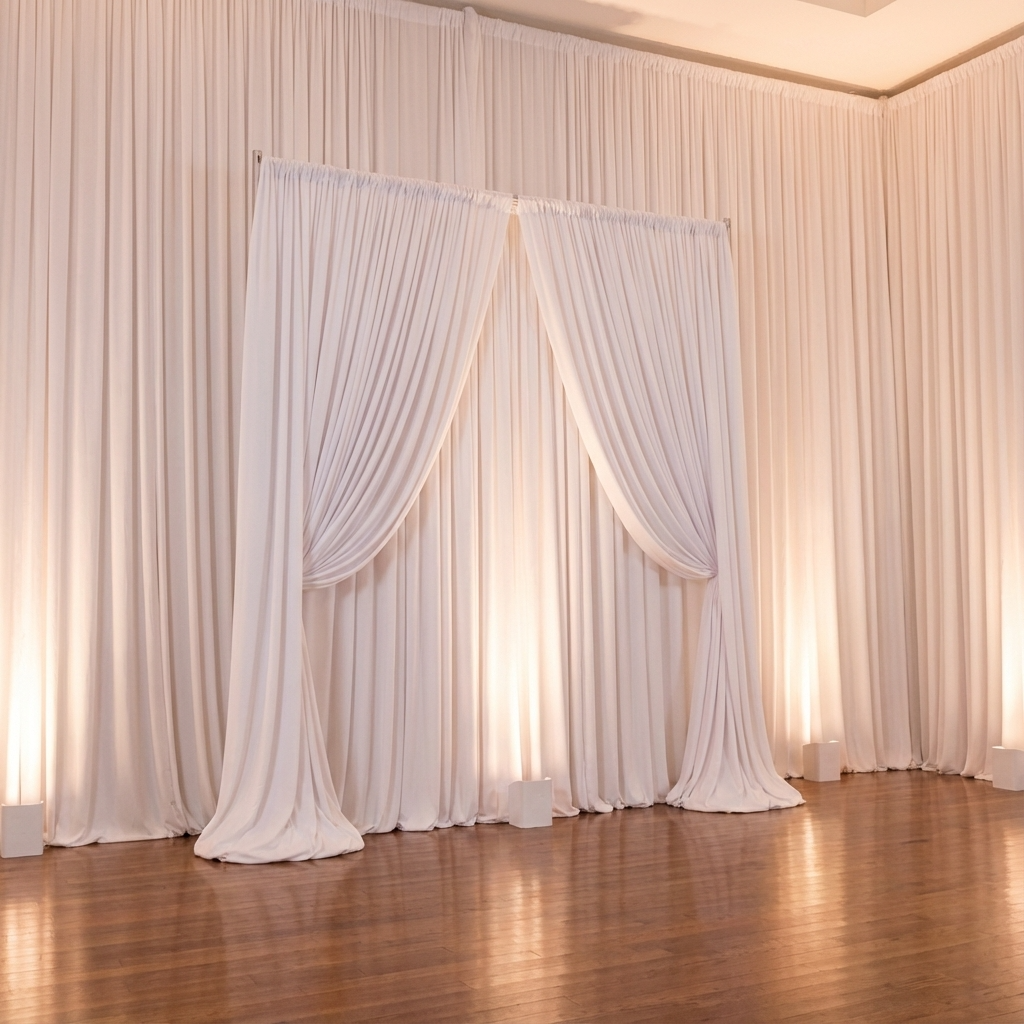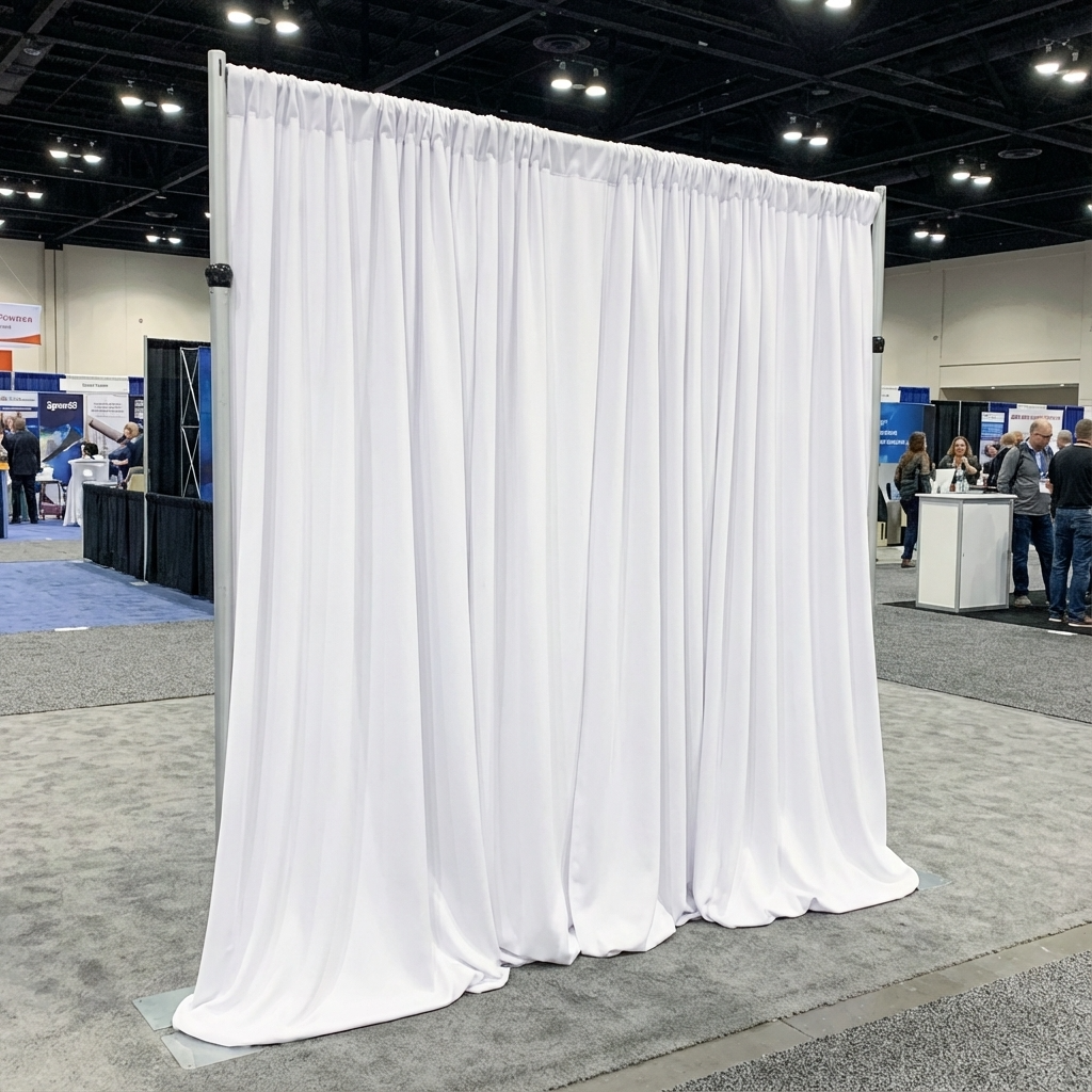 SIZE OPTIONS: Select your desired panel height above. Panels are approx. 58" wide and come standard with a 4" Rod Pocket on top. You can add a bottom Rod Pocket for an additional $5.00 per panel. Our drapes will work on any of our Pipe & Drape systems. Contact us at 800-590-9508 for custom sizing.