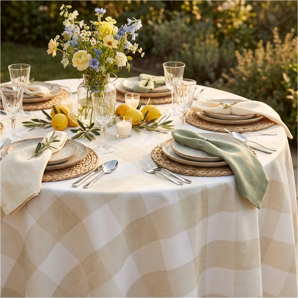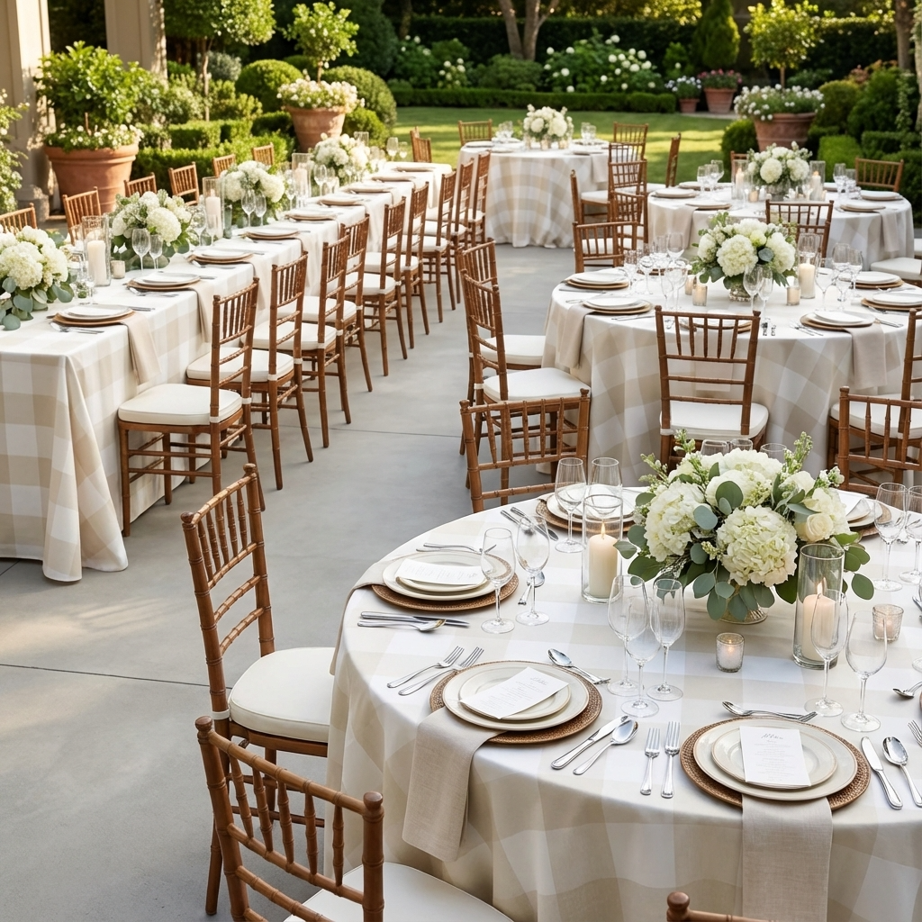 Start by measuring the length, width, or diameter of your table to determine the appropriate tablecloth size. For floor-length linens, don’t forget to include the table height, which is typically 30 inches for standard sit-down tables.