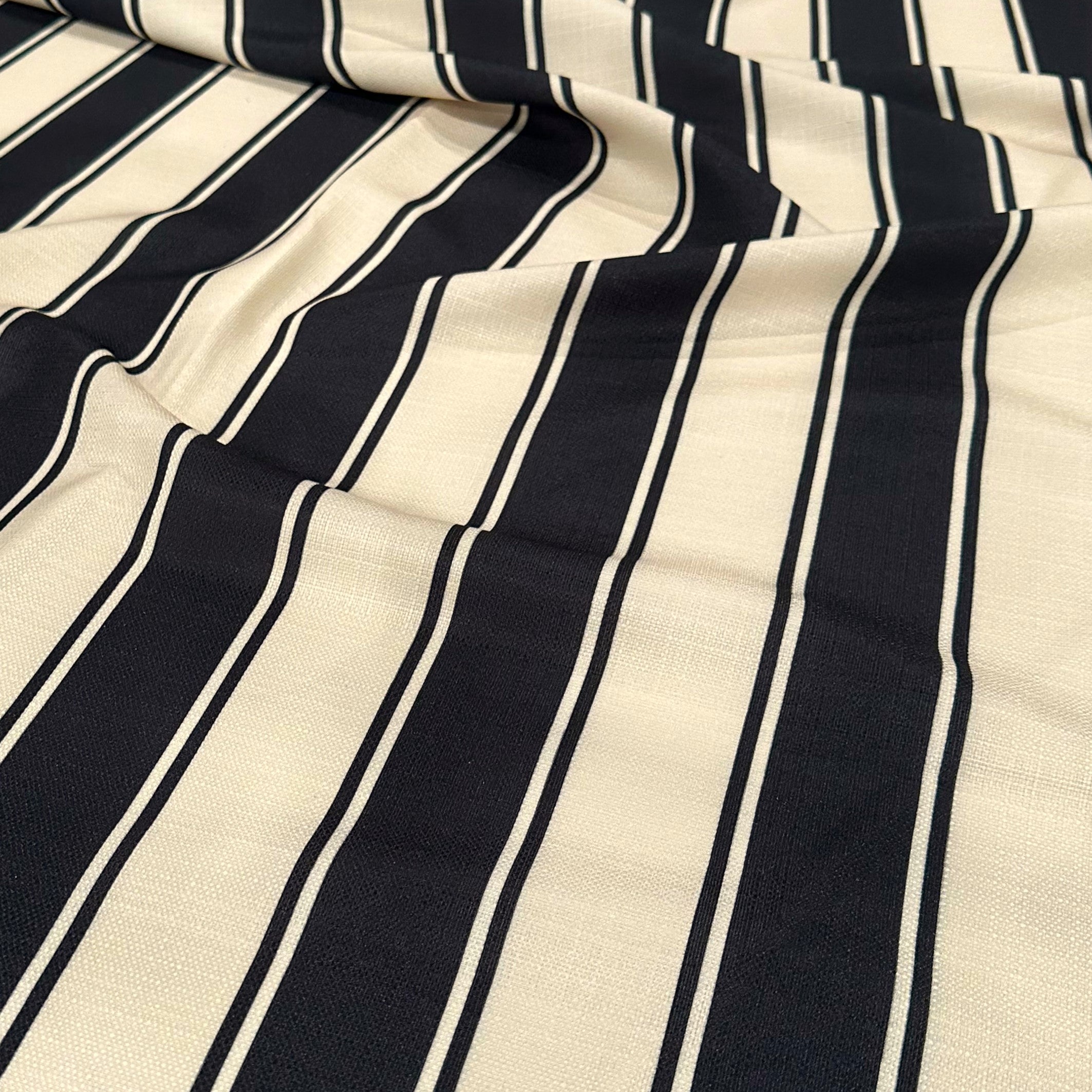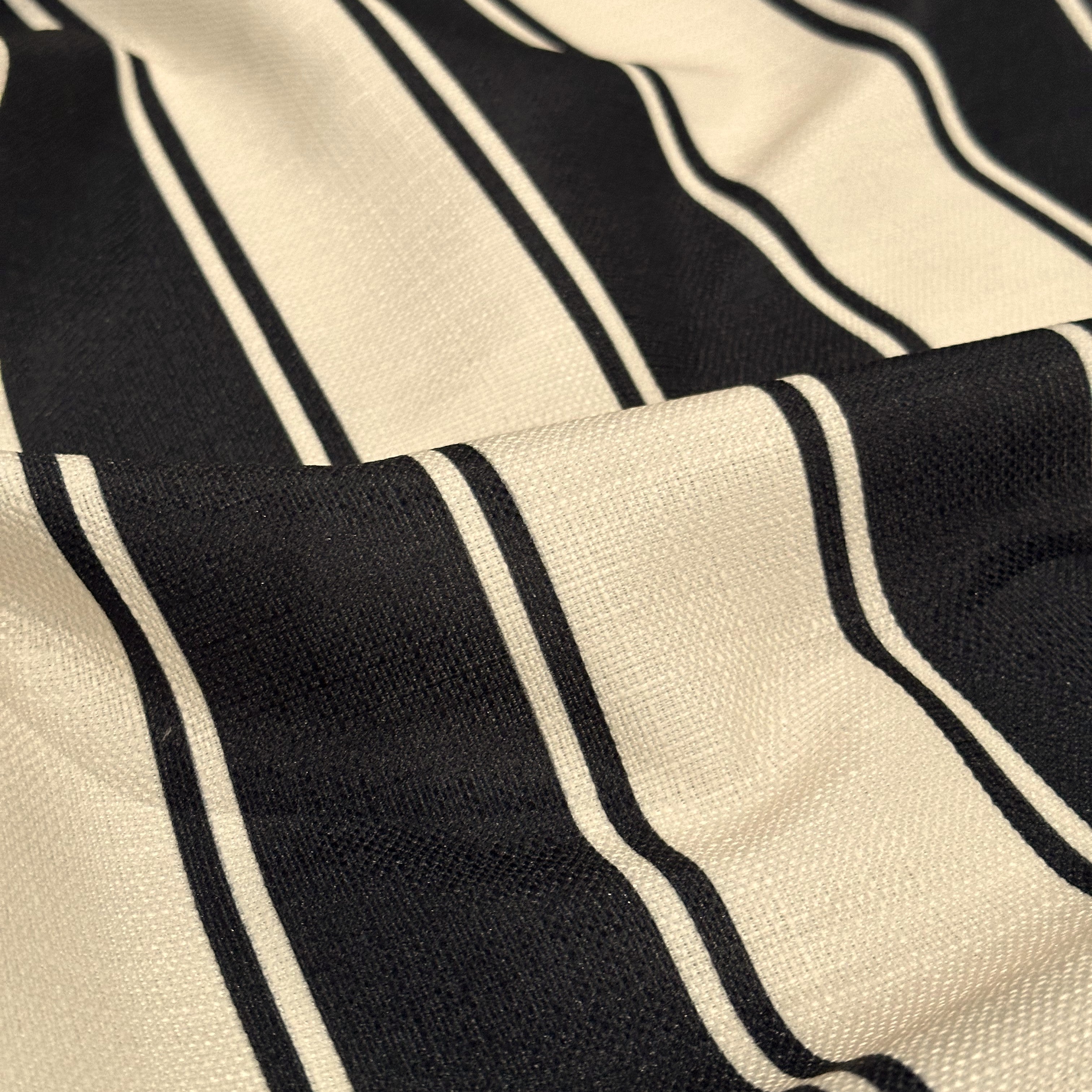 Cabana Stripe (Slub Print) Table Linen in Black / Ivory
