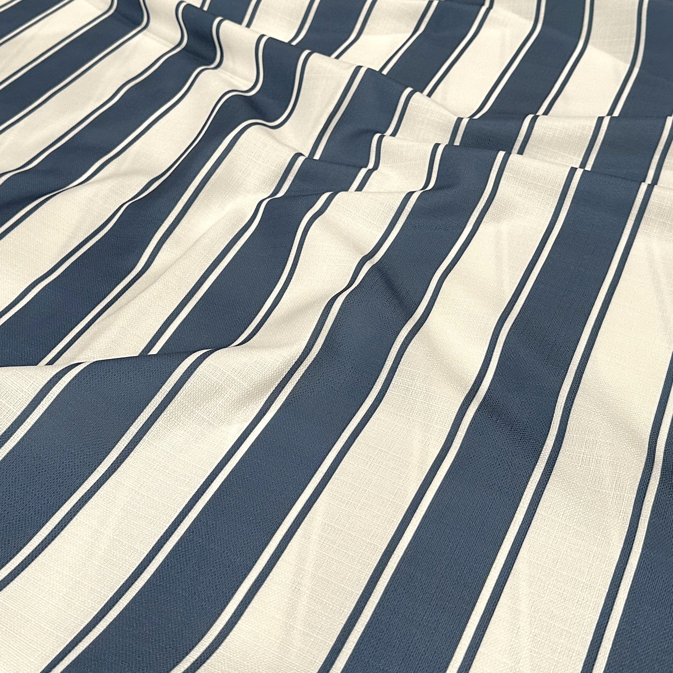 Cabana Stripe (Slub Print) Table Linen in Navy / White