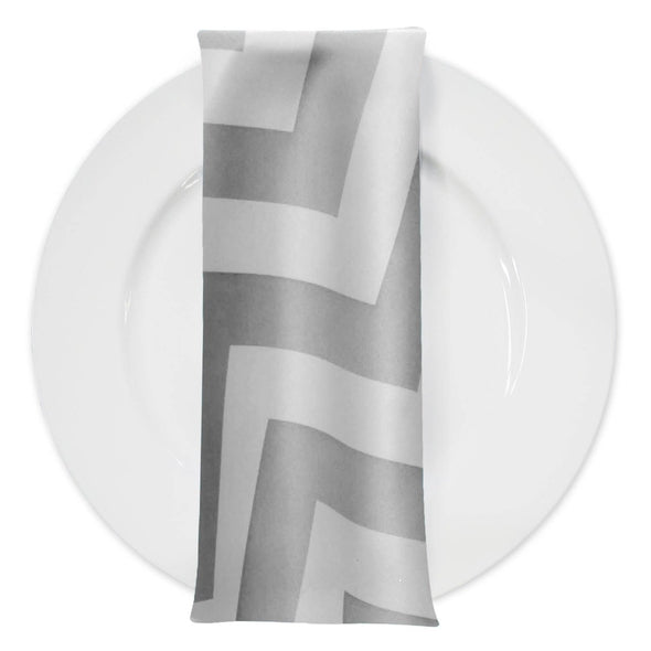 Chevron Print (Lamour) Table Napkin in Silver and White